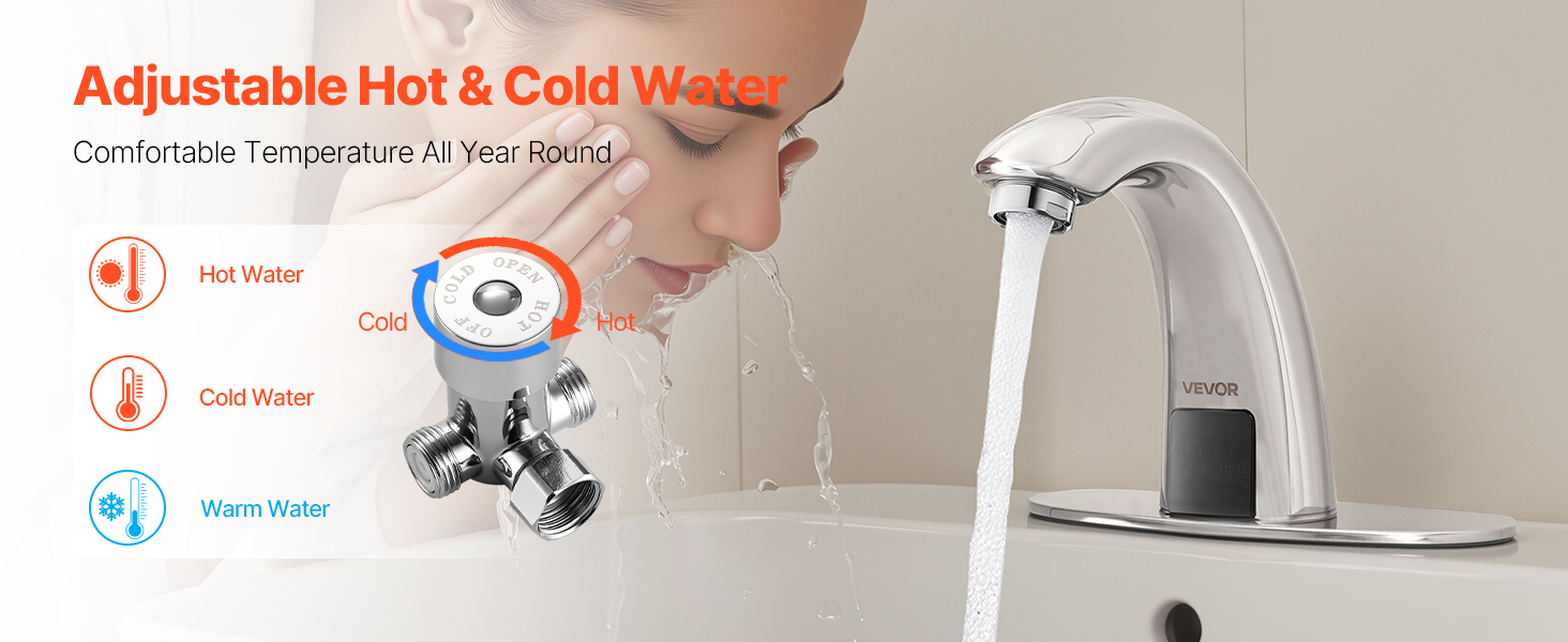 Táto umývadlová batéria do kúpeľne podporuje nastavenie teploty teplej a studenej vody, čím poskytuje ideálnu teplotu po celý rok, čo je ideálne na udržanie pohodlia vašich rúk v lete aj v zime.