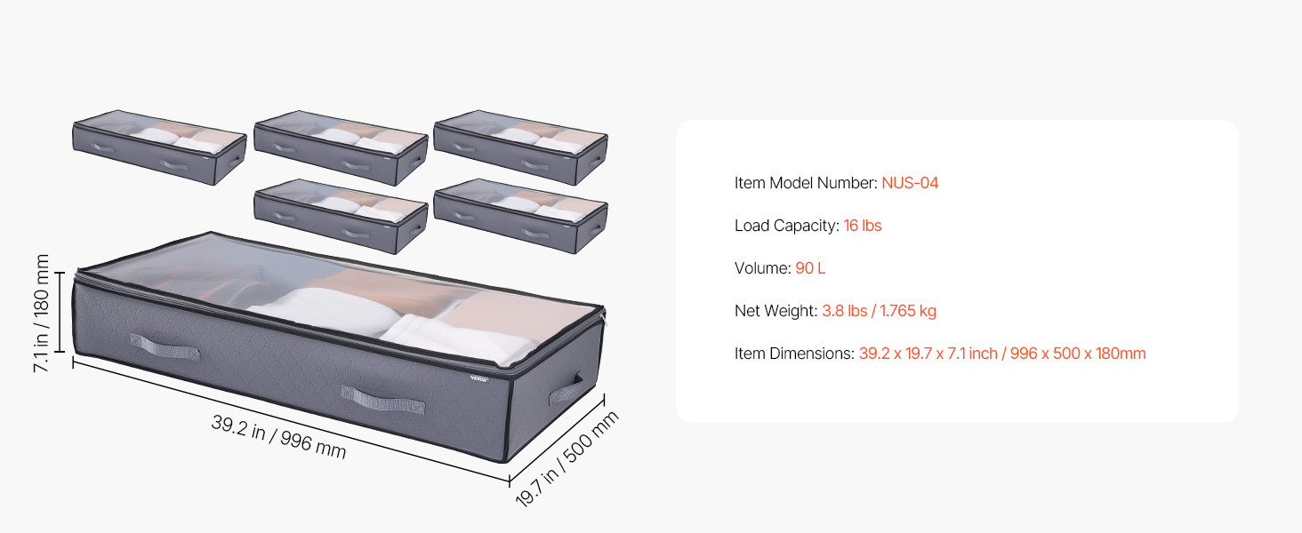 Tento úložný priestor pod posteľou sa hodí pod postele, pohovky, stoly a nábytok a ponúka praktické riešenie na usporiadanie oblečenia, obuvi a hračiek.