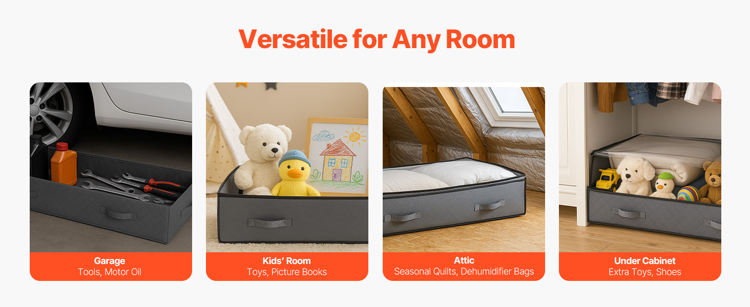 Naše úložné priestory pod posteľou slúžia domácnostiam všetkých veľkostí a často sa sťahujúcim ľuďom. Optimalizuje využitie priestoru efektívnym ukladaním predmetov, ponúka diskrétnu organizáciu s odolnosťou proti prachu, vlhkosti, vysokou nosnosťou a ľahkou mobilitou, čím prináša modulárne úložné riešenie prispôsobené kompaktným priestorom.