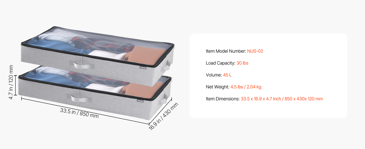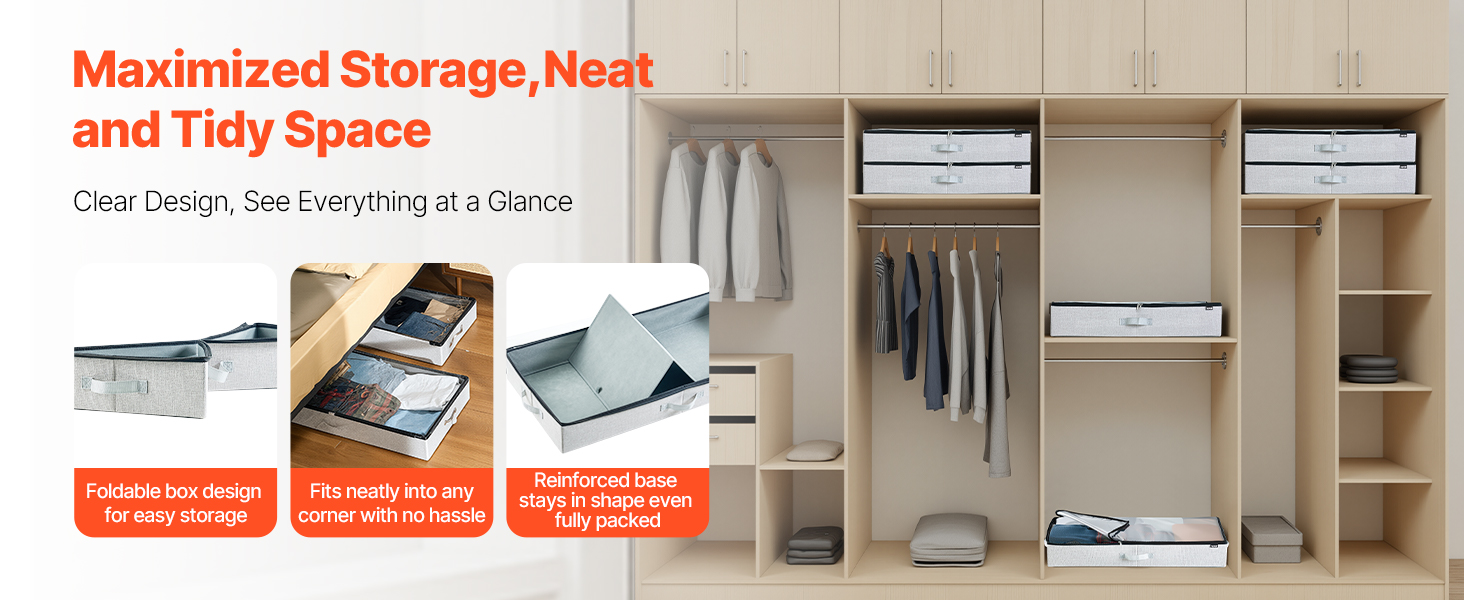 Tento úložný priestor pod posteľou sa hodí pod postele, pohovky, stoly a nábytok a ponúka praktické riešenie na usporiadanie oblečenia, obuvi a hračiek.