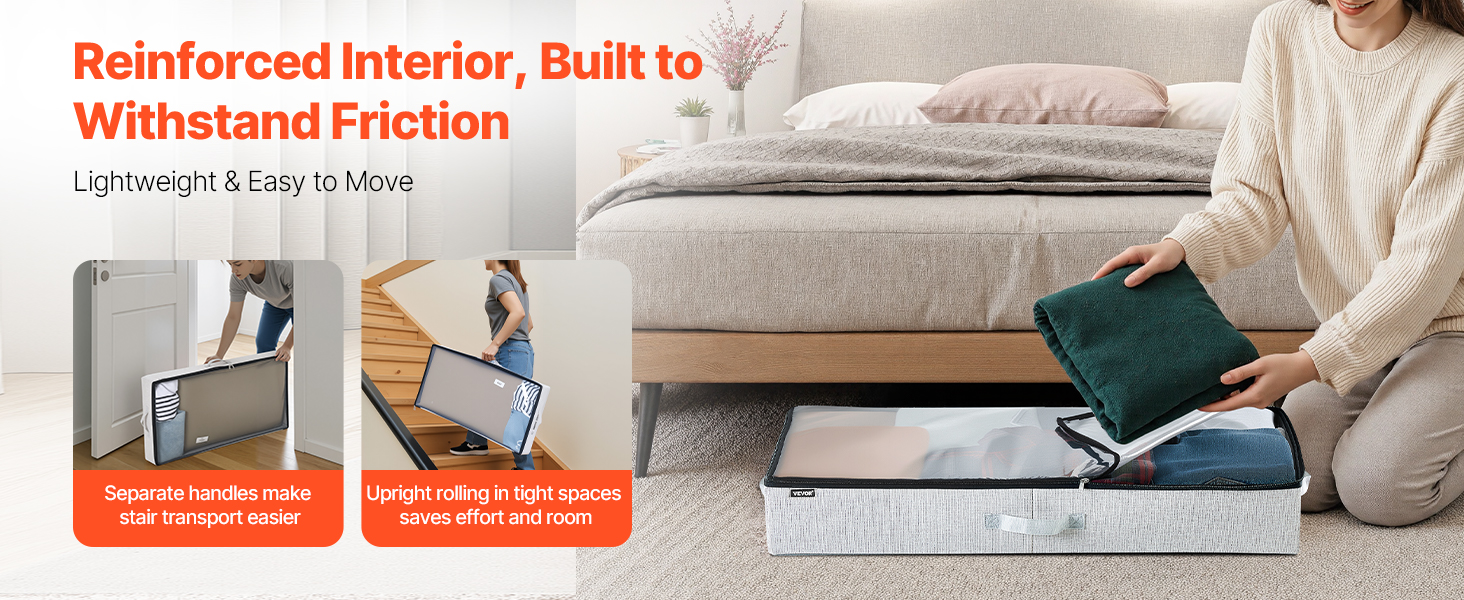 Naše úložné priestory pod posteľou slúžia domácnostiam všetkých veľkostí a často sa sťahujúcim ľuďom. Optimalizuje využitie priestoru efektívnym ukladaním predmetov, ponúka diskrétnu organizáciu s odolnosťou proti prachu, vlhkosti, vysokou nosnosťou a ľahkou mobilitou, čím prináša modulárne úložné riešenie prispôsobené kompaktným priestorom.