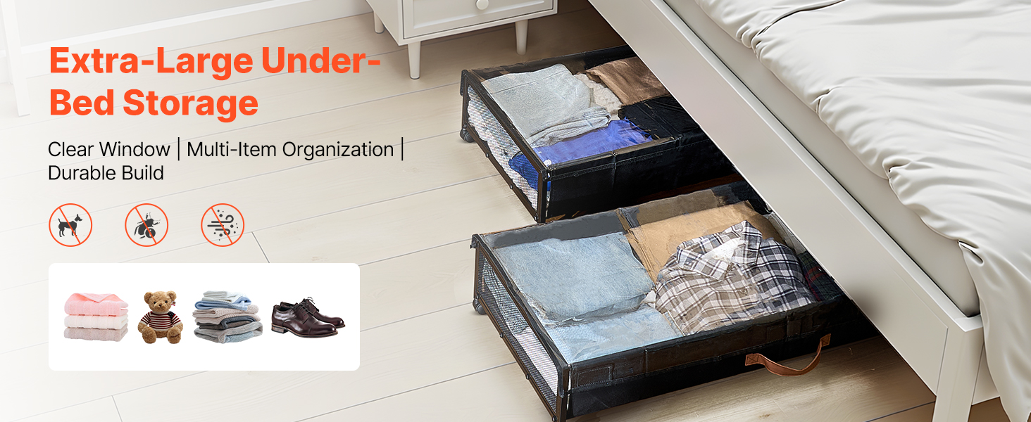 Tento úložný priestor pod posteľou sa hodí pod postele, pohovky, stoly a nábytok a ponúka praktické riešenie na usporiadanie oblečenia, obuvi a hračiek.
