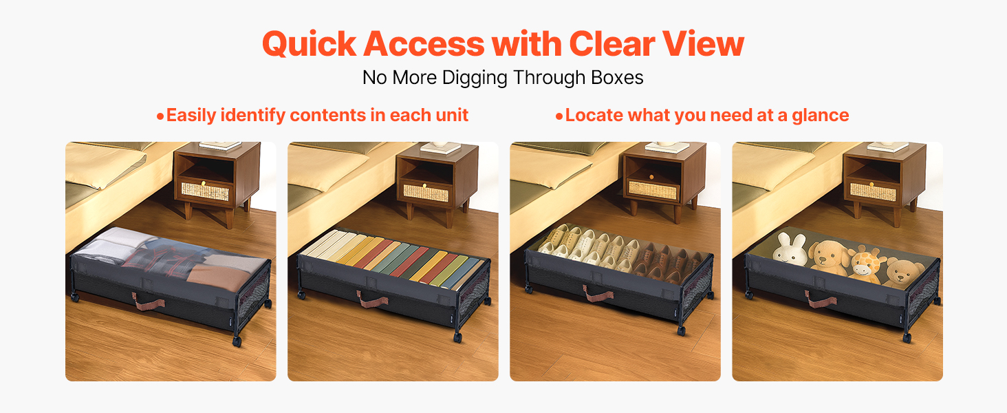 Naše úložné priestory pod posteľou slúžia domácnostiam všetkých veľkostí a často sa sťahujúcim ľuďom. Optimalizuje využitie priestoru efektívnym ukladaním predmetov, ponúka diskrétnu organizáciu s odolnosťou proti prachu, vlhkosti, vysokou nosnosťou a ľahkou mobilitou, čím prináša modulárne úložné riešenie prispôsobené kompaktným priestorom.