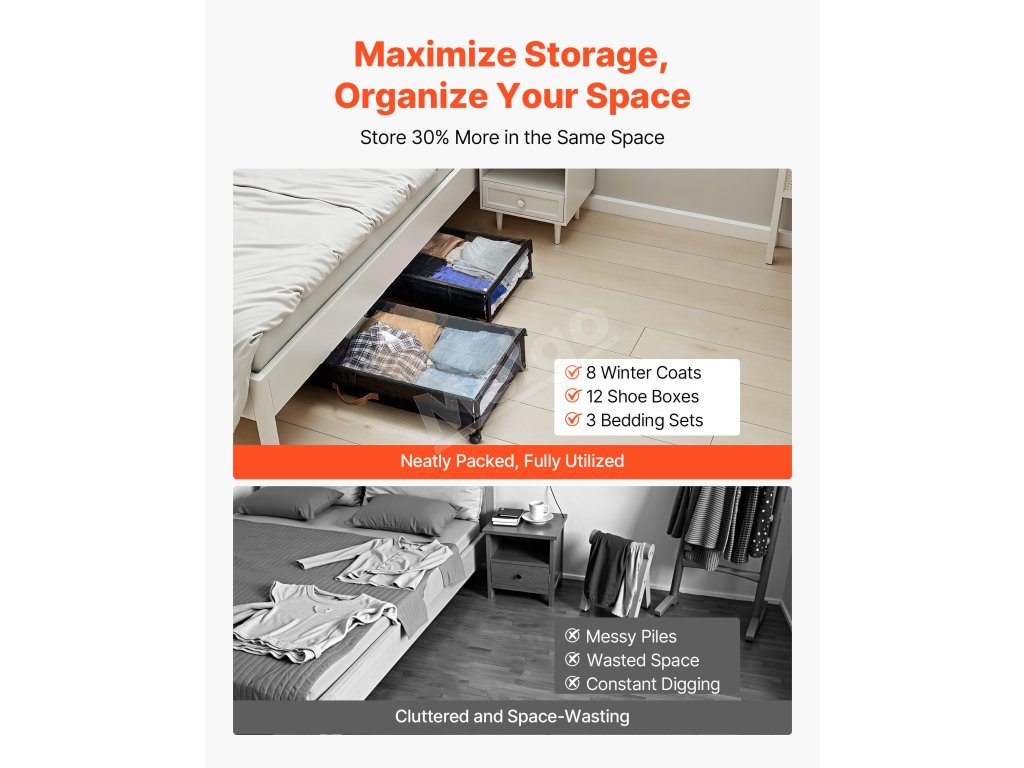 Tento úložný priestor pod posteľou sa hodí pod postele, pohovky, stoly a nábytok a ponúka praktické riešenie na usporiadanie oblečenia, obuvi a hračiek.