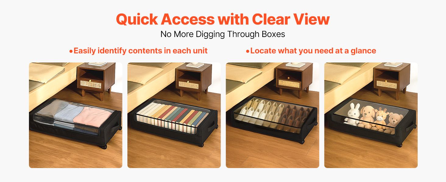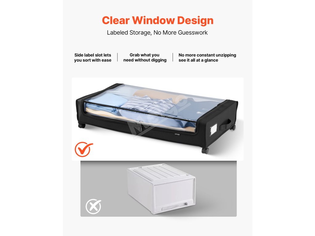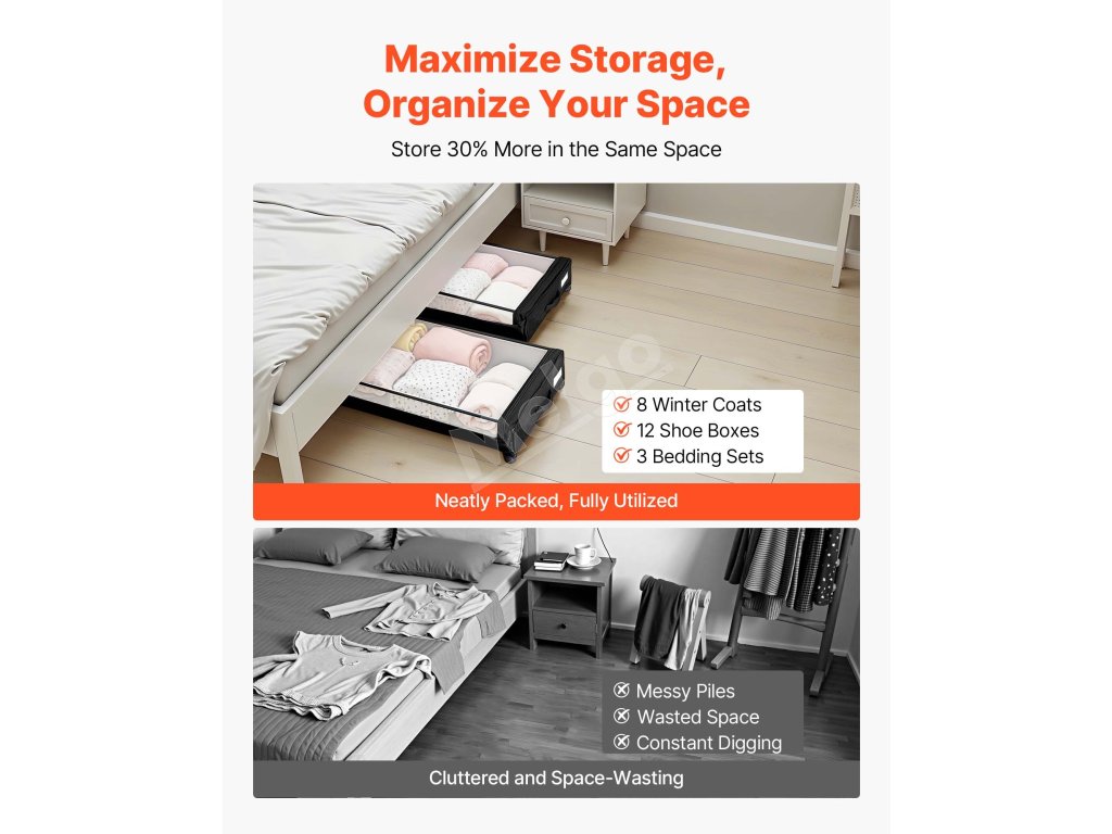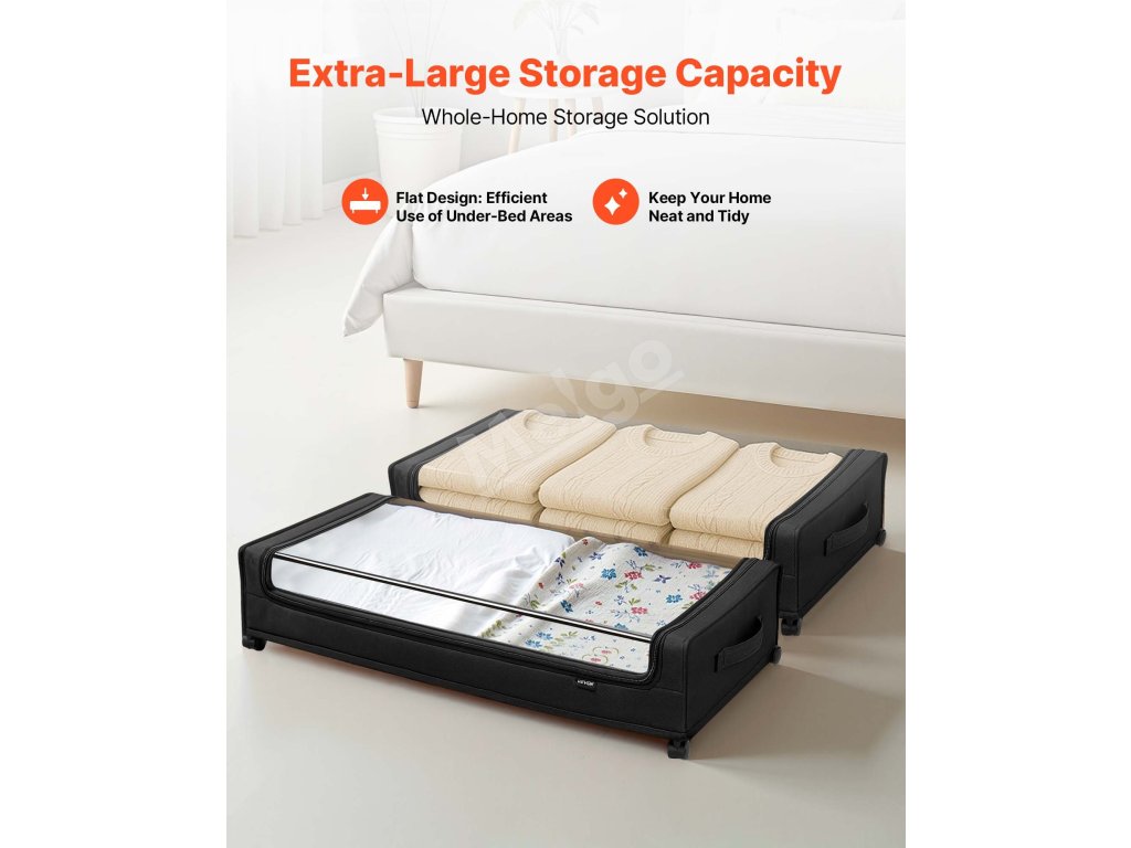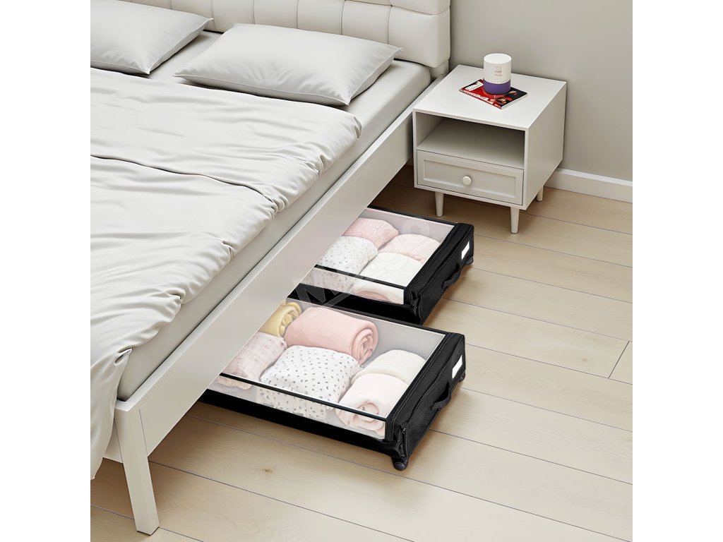 Tento úložný priestor pod posteľou sa hodí pod postele, pohovky, stoly a nábytok a ponúka praktické riešenie na usporiadanie oblečenia, obuvi a hračiek.