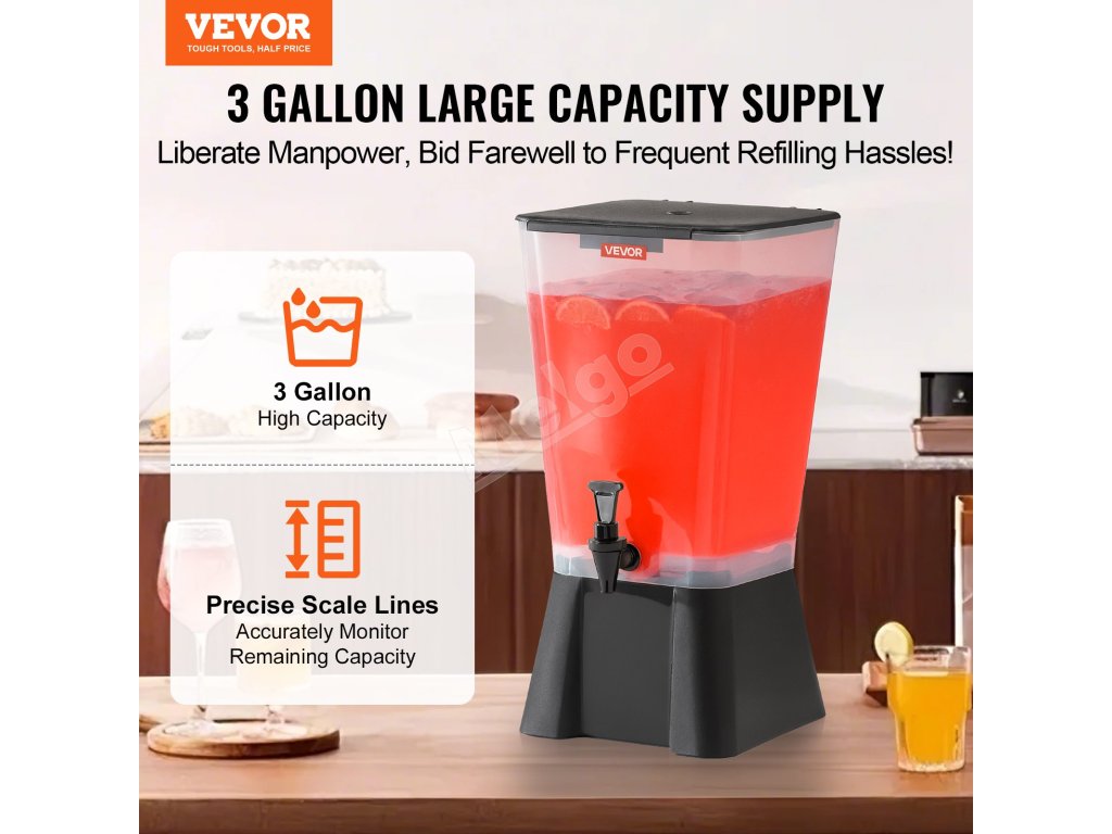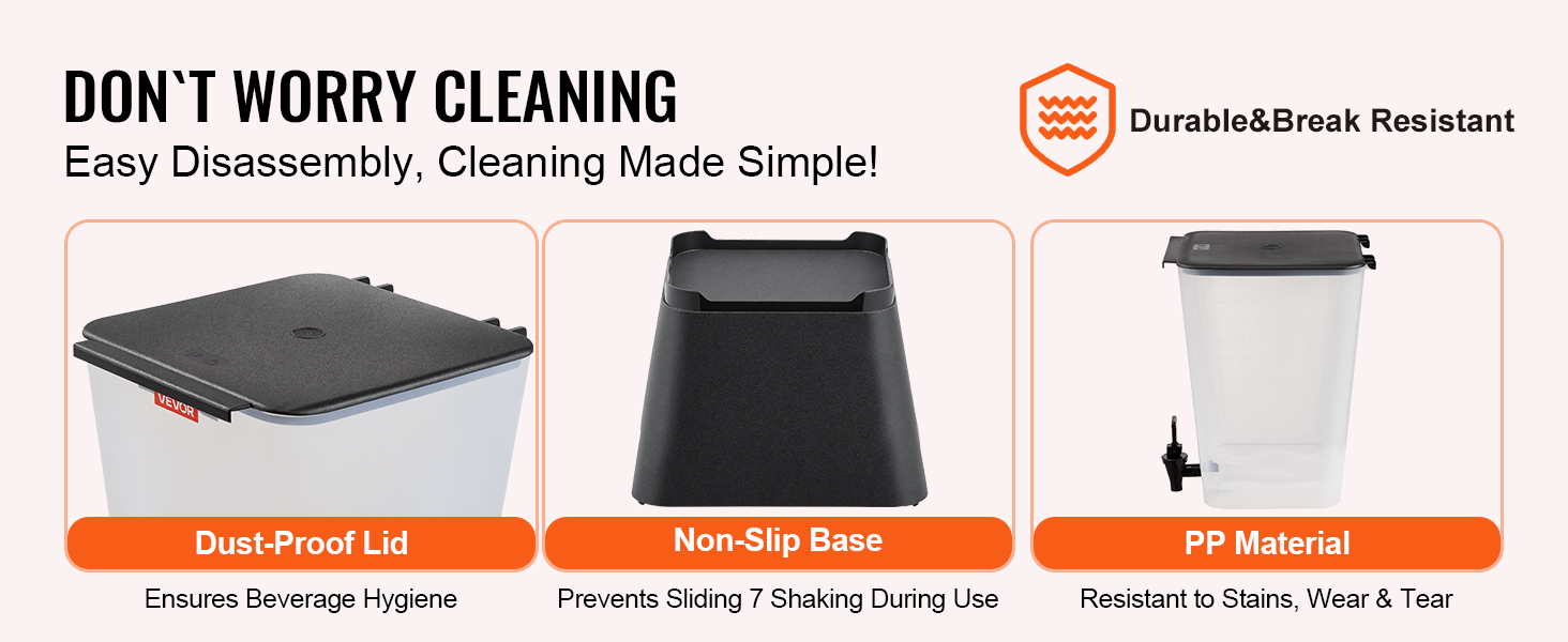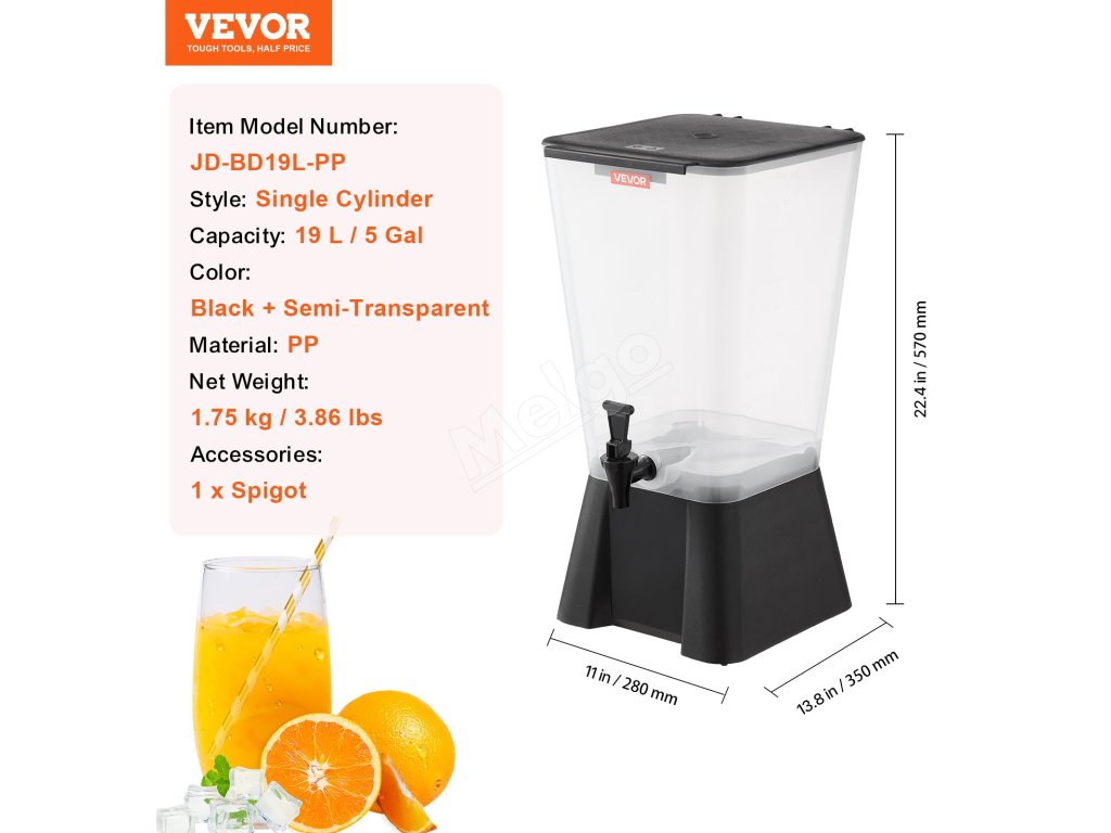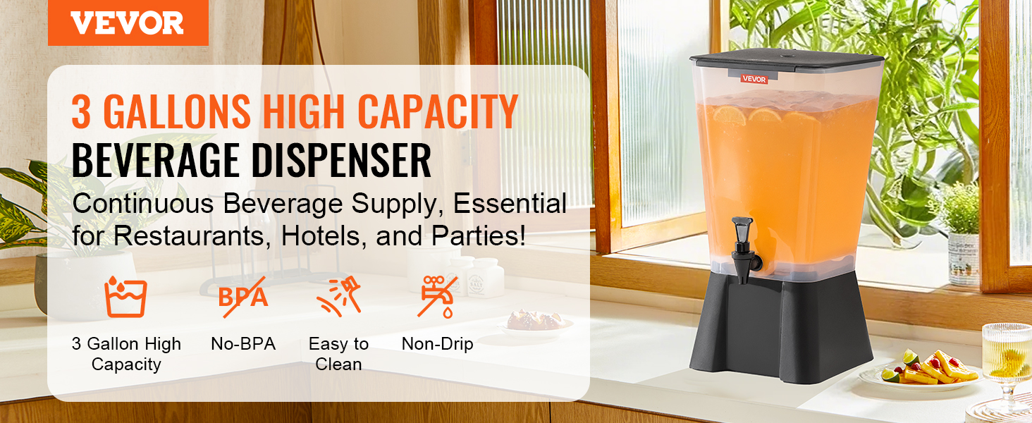 Výdajník džúsov je vyrobený z potravinárskeho materiálu PP, je odolný voči škvrnám, trvácny a vhodný do umývačky riadu. Ideálny na ľadový čaj, džús alebo vodu.