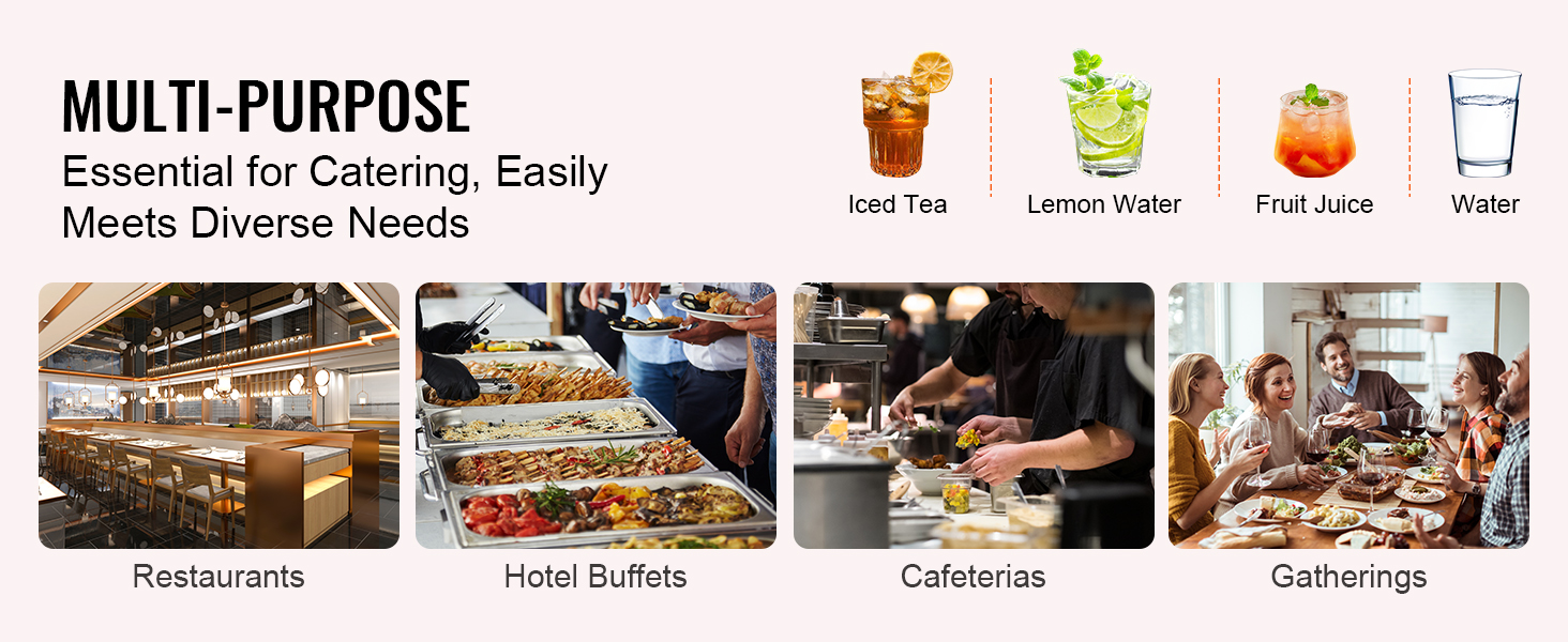 Tento nápojový automat s kapacitou 19 l / 5 galónov zabezpečuje nepretržitý prísun nápojov, čím znižuje potrebu častého dopĺňania, čo je ideálne pre rušné reštaurácie, hotely a večierky.
