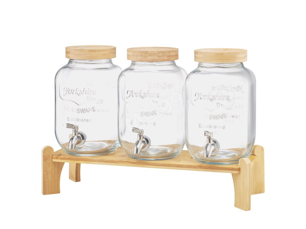 Set 3×3.8L sklenených dávkovačov s infuzérom a nerezovým kohútikom