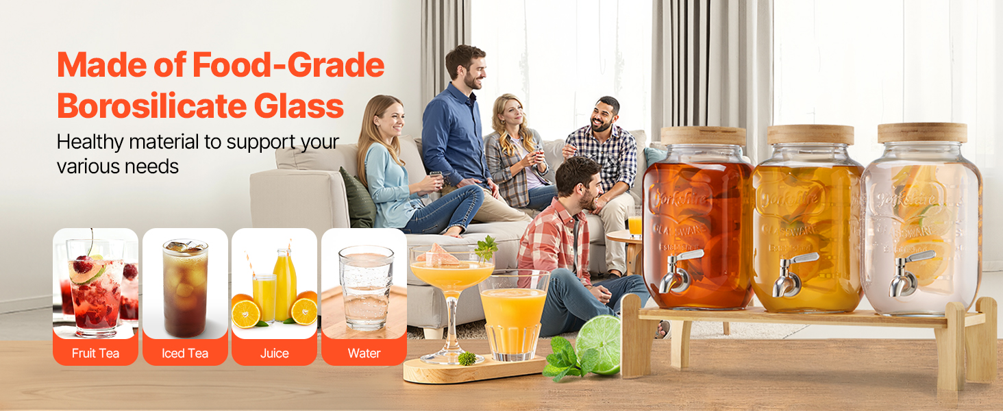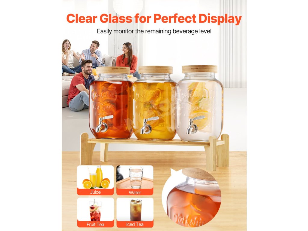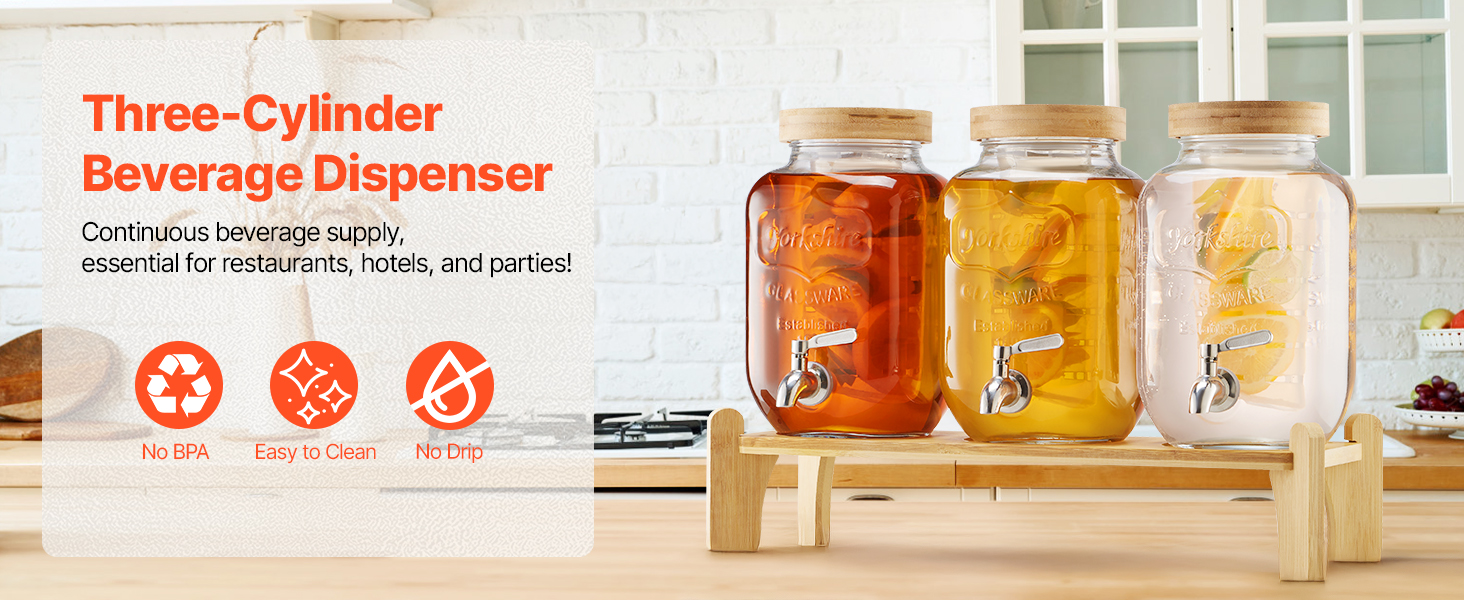 Výdajník džúsov je vyrobený z potravinárskeho skla, je odolný voči škvrnám, trvácny a vhodný do umývačky riadu. Ideálny na ľadový čaj, džús alebo vodu.