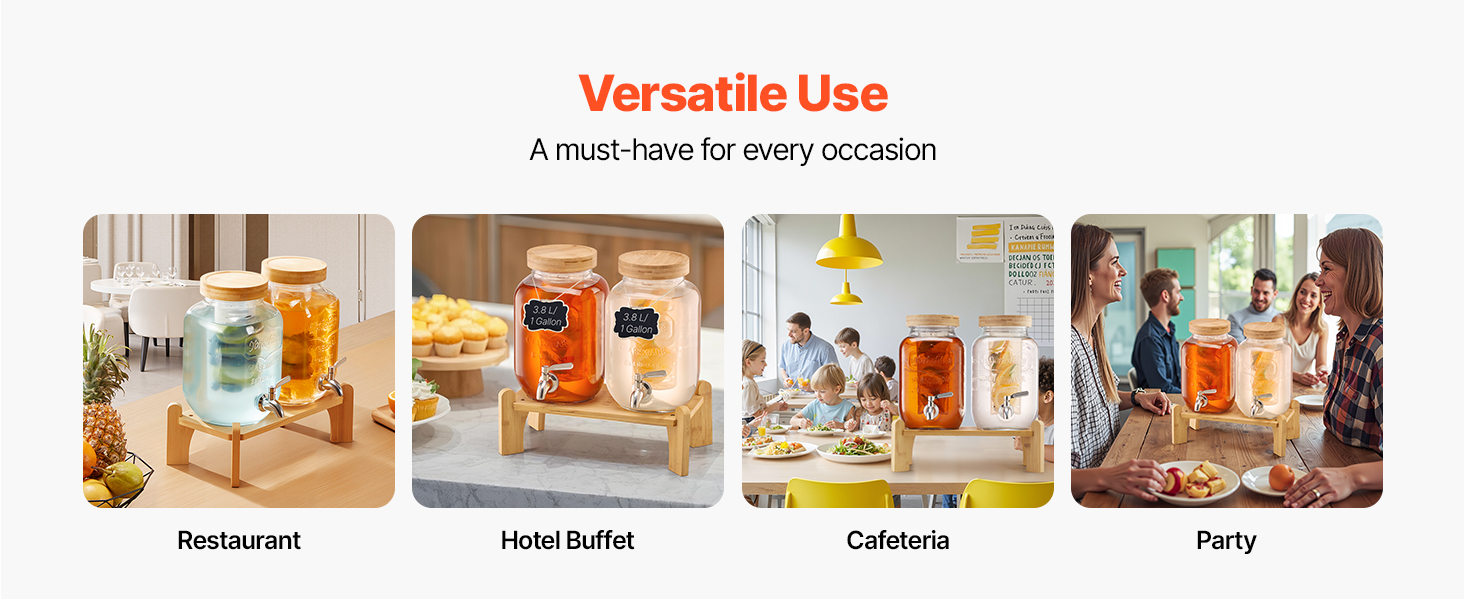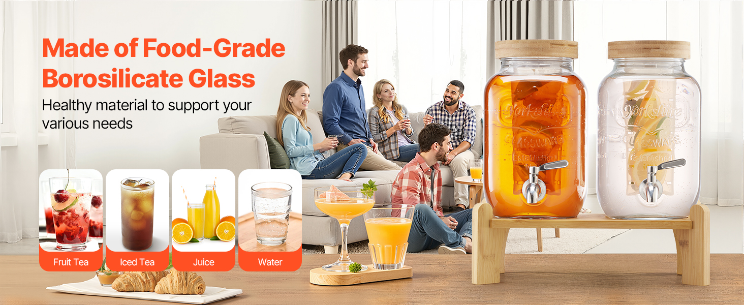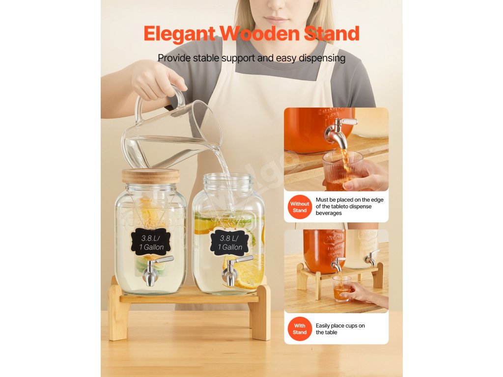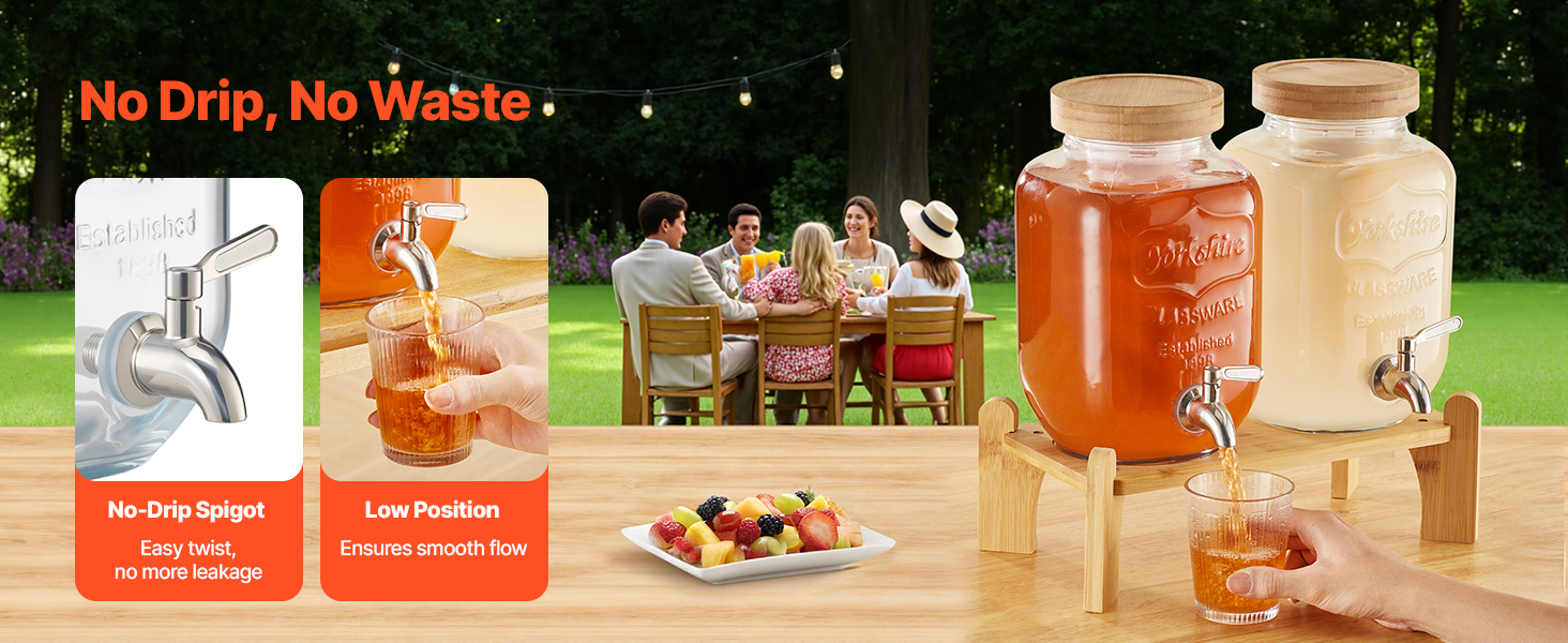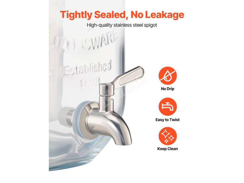 Výdajník džúsov je vyrobený z potravinárskeho skla, je odolný voči škvrnám, trvácny a vhodný do umývačky riadu. Ideálny na ľadový čaj, džús alebo vodu.