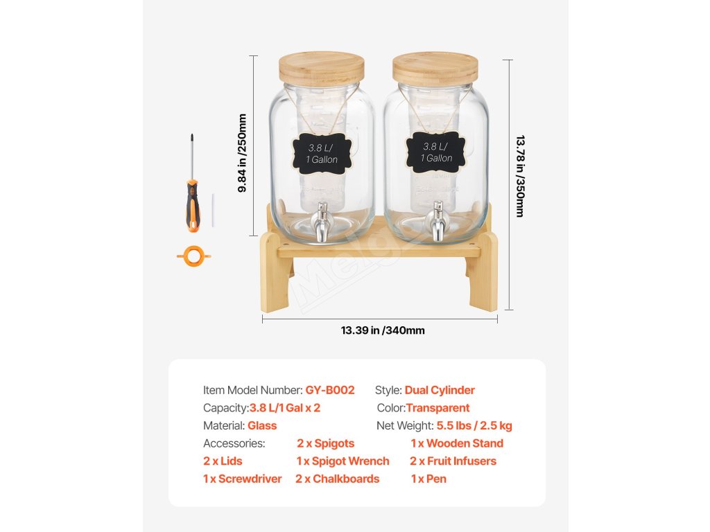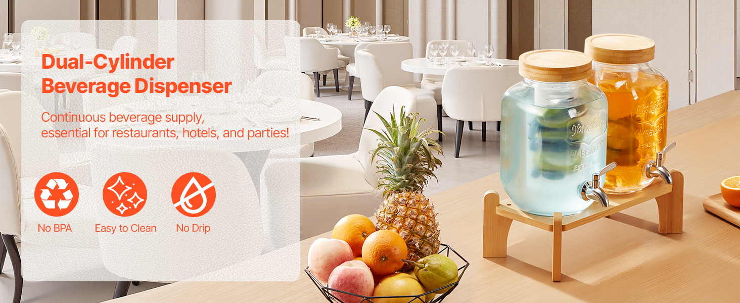 Tento dávkovač nápojov má celkovú kapacitu 7,6 l / 2 galóny (3,8 l / 1 galón na fľašu). Konštrukcia s dvoma valcami umožňuje podávať dva rôzne nápoje, čím sa zabezpečí nepretržitý prísun nápojov.