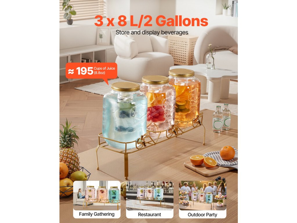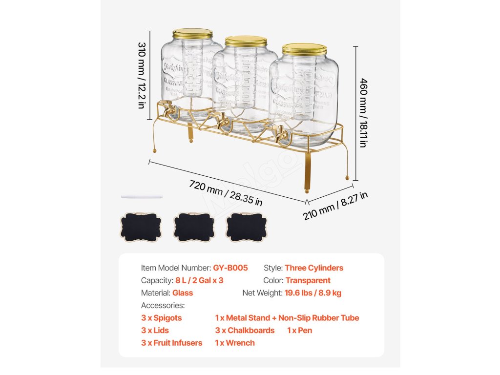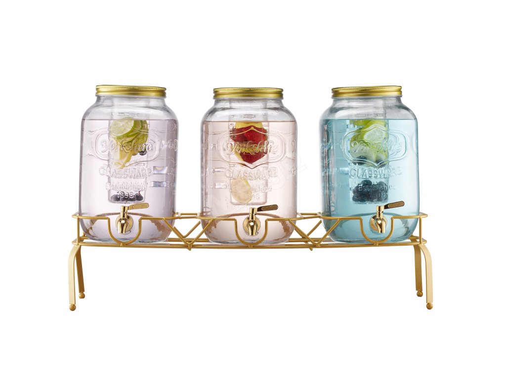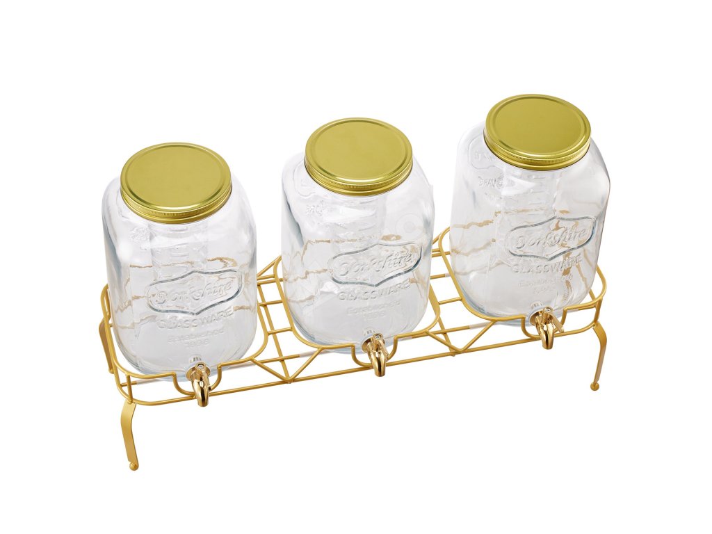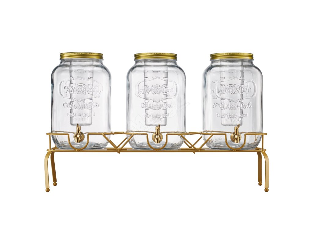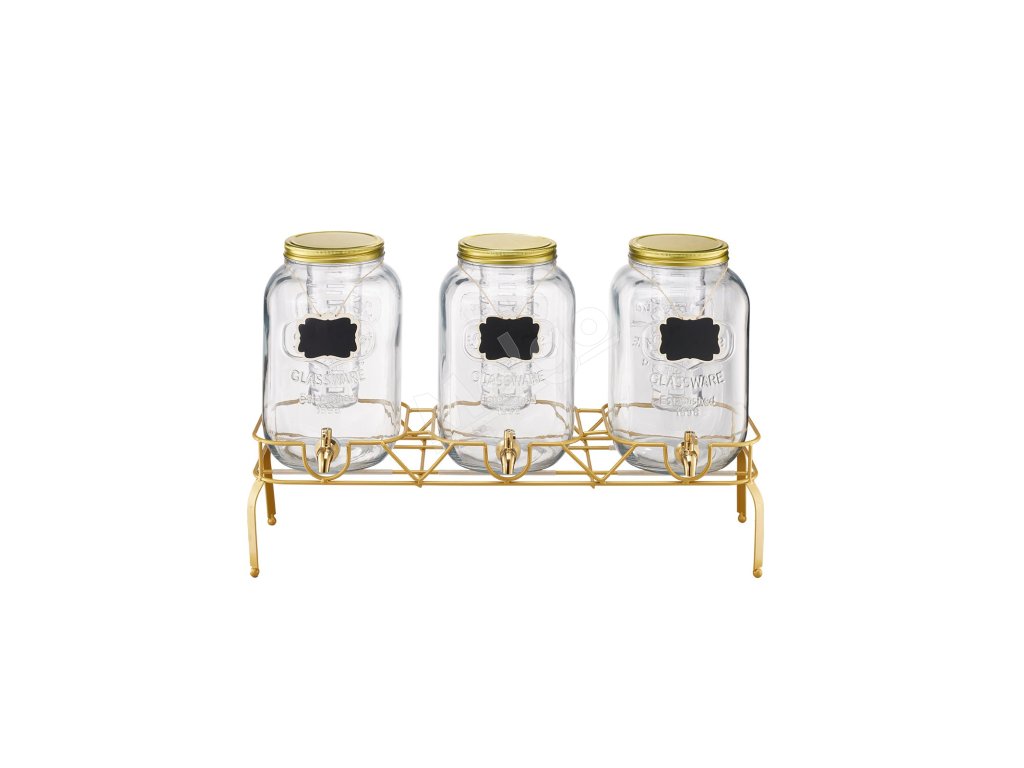 Výdajník nápojov 3×8 l súprava sklo, stojan, nerez kohútik, infuzér