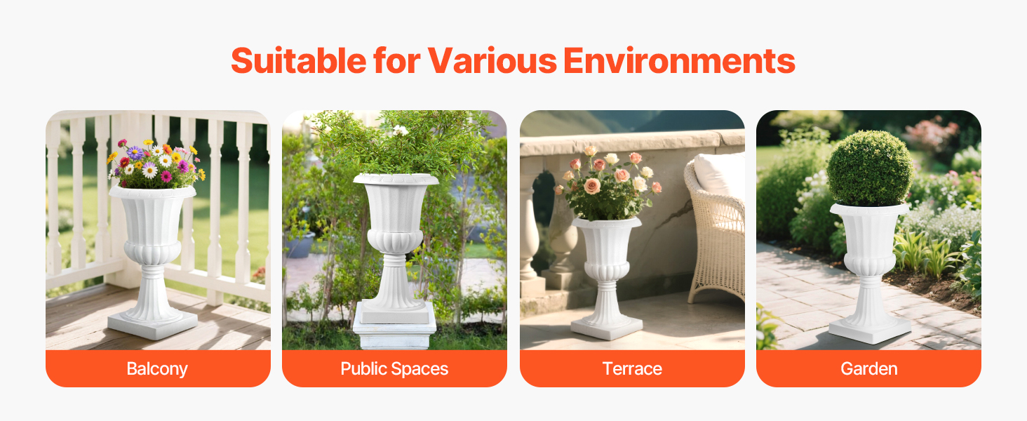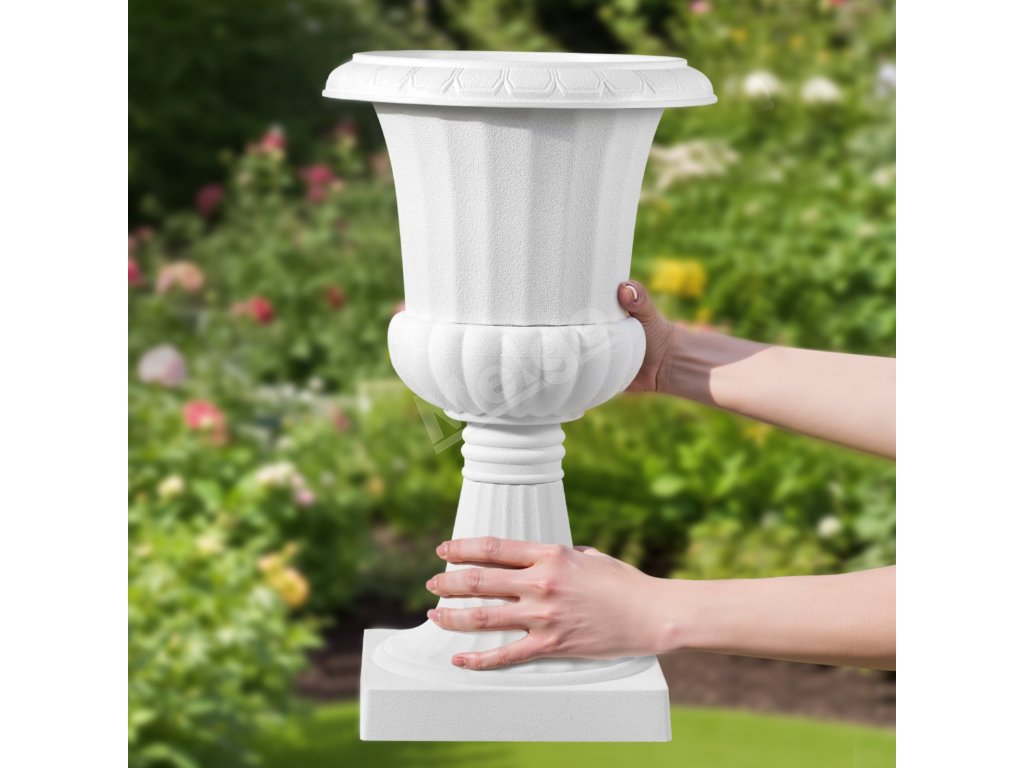Tento klasický kvetináč je ideálny na balkóny, terasy, záhrady alebo verejné priestranstvá. Bez problémov zapadne do každého prostredia a s minimálnym úsilím vnesie do každého priestoru prirodzený pôvab.
