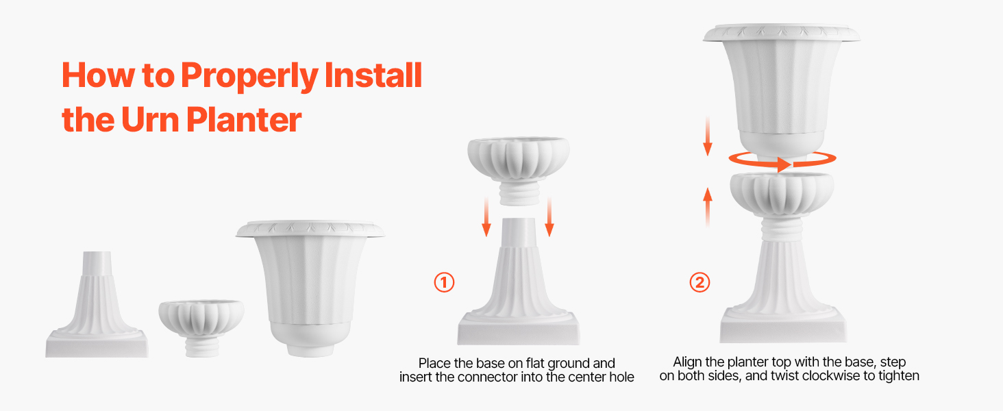 Nie je potrebné žiadne náradie! Stačí umiestniť podstavec, vložiť konektor, zarovnať kvetináč a pevne ho zatočiť. Topiary plantér je pripravený na použitie len v dvoch jednoduchých krokoch, takže môžete hneď začať s výsadbou.