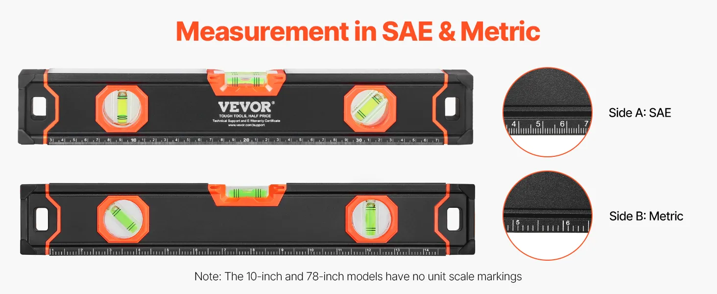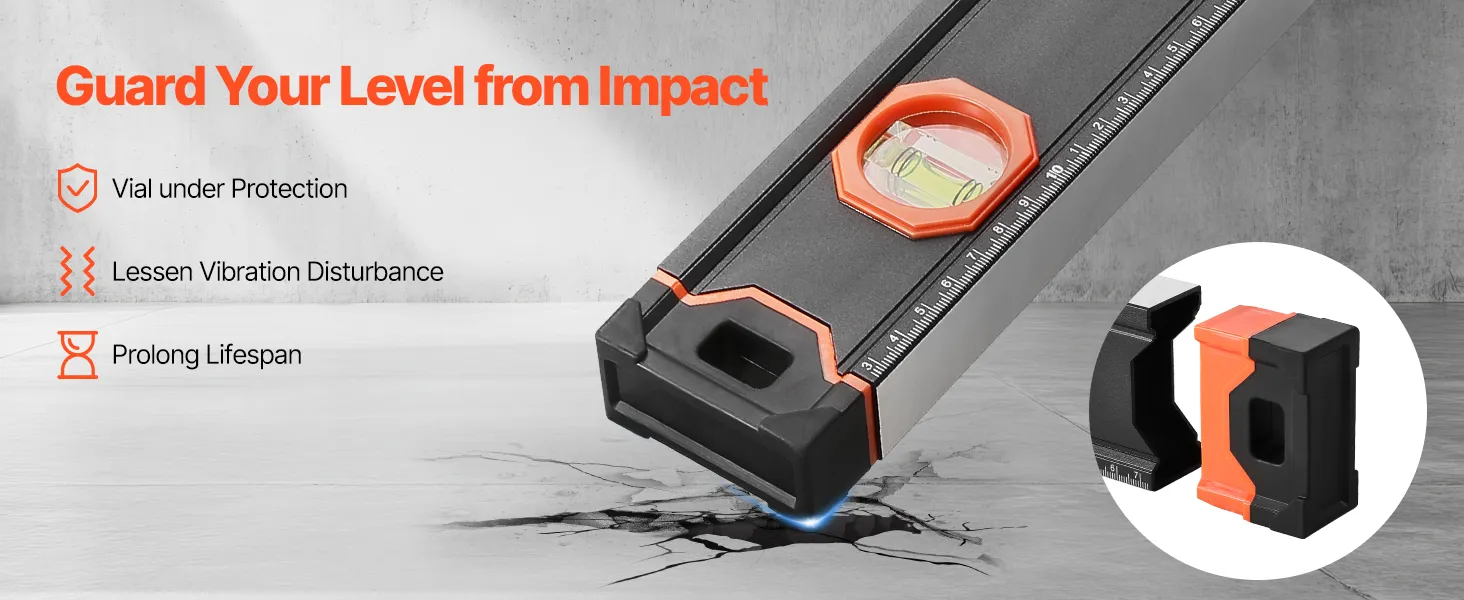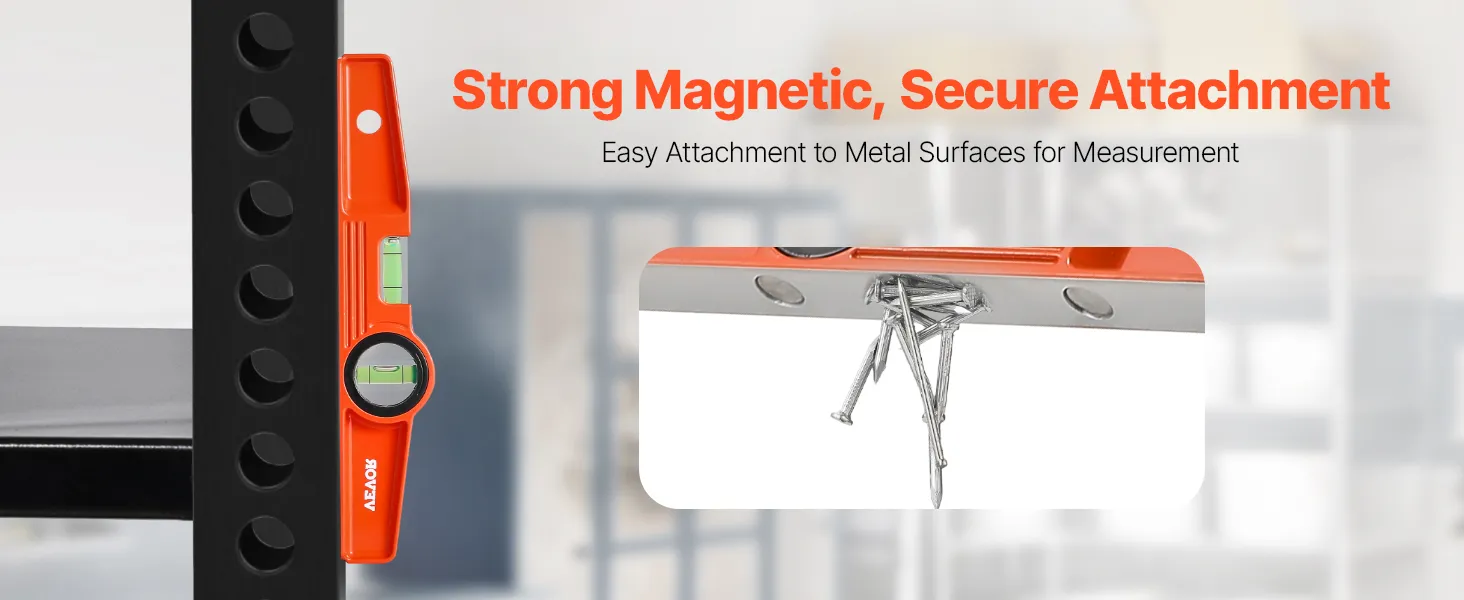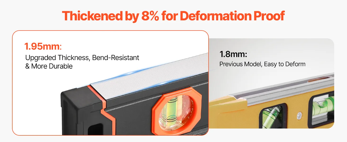Naše torpédové vodováhy majú odolné hliníkové telo s vysokou tvrdosťou, ktoré odoláva opotrebovaniu, korózii, hrdzi a ohybu. 3 bublinkové libelly z akrylového skla ponúkajú jasné čítanie a 3 typy merania zvládajú rôzne potreby. Zhrubnuté koncové kryty a silné magnety zabezpečujú nárazuvzdorné, bezpečné upevnenie a jednoduché meranie.