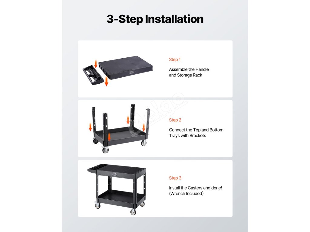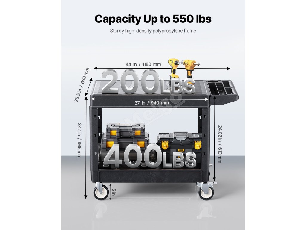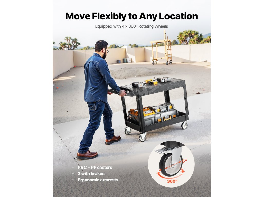 Zoznámte sa so svojím dokonalým mobilným pomocníkom! Tento úžitkový vozík unesie až 550 kg, takže je vhodným riešením na uskladnenie náradia, vybavenia a dielov. Vďaka 4 hladkým otočným kolieskam ho môžete posúvať kamkoľvek, od kancelárie až po sklad, bez toho, aby ste sa zapotili.