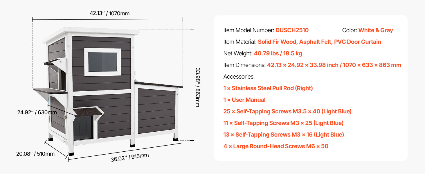 Drevený domček pre mačky je vyrobený z prvotriedneho jedľového dreva a je odolný a udržateľný. Poskytuje teplý a bezpečný prístrešok s priestranným interiérom na odpočinok.