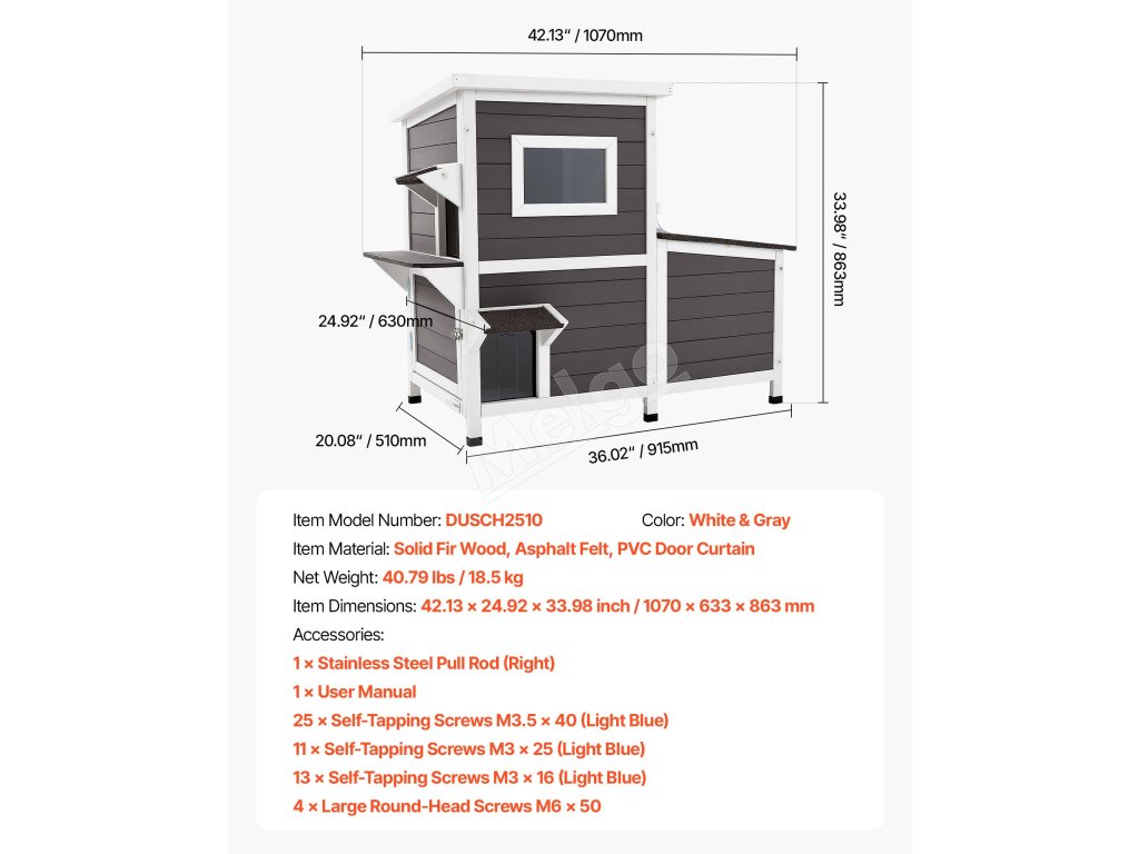 Drevený domček pre mačky je vyrobený z prvotriedneho jedľového dreva a je odolný a udržateľný. Poskytuje teplý a bezpečný prístrešok s priestranným interiérom na odpočinok.