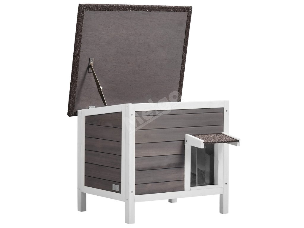 Tento drevený domček pre mačky je vhodný do interiéru aj exteriéru. Je ideálny na trávnik, záhradu, balkón a dvor a poskytuje vašej mačke útulný priestor na odpočinok a hry.