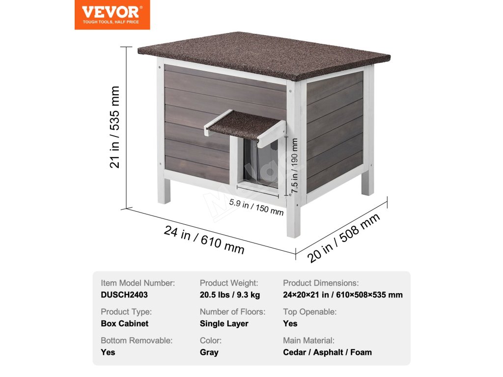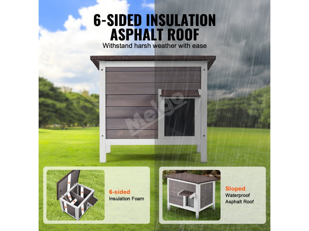Venkovný domček pre mačky, drevený izolovaný, pvc dvierka, 24"×20"×21"