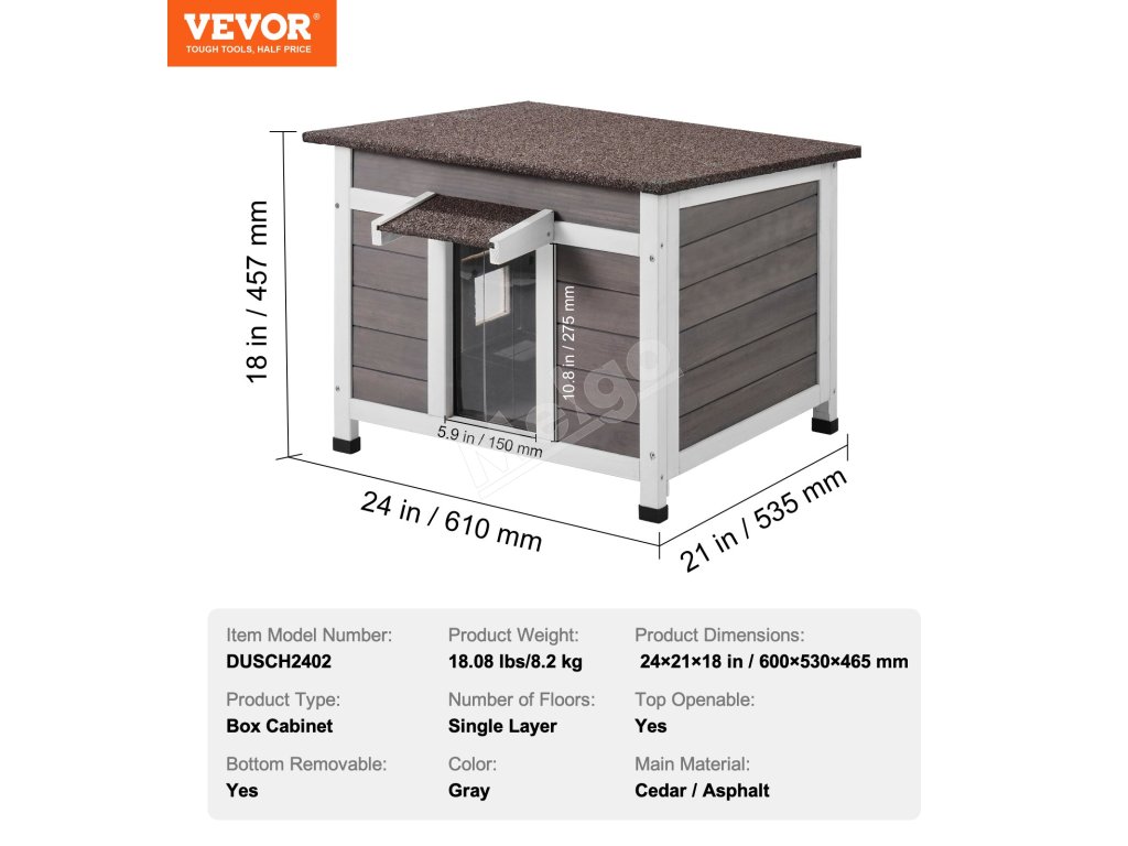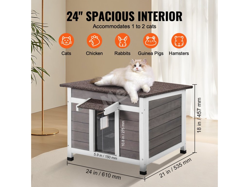 Vonkajší domček pre mačky z dreva s oknom pvc dvierkami 24"×21"×18"