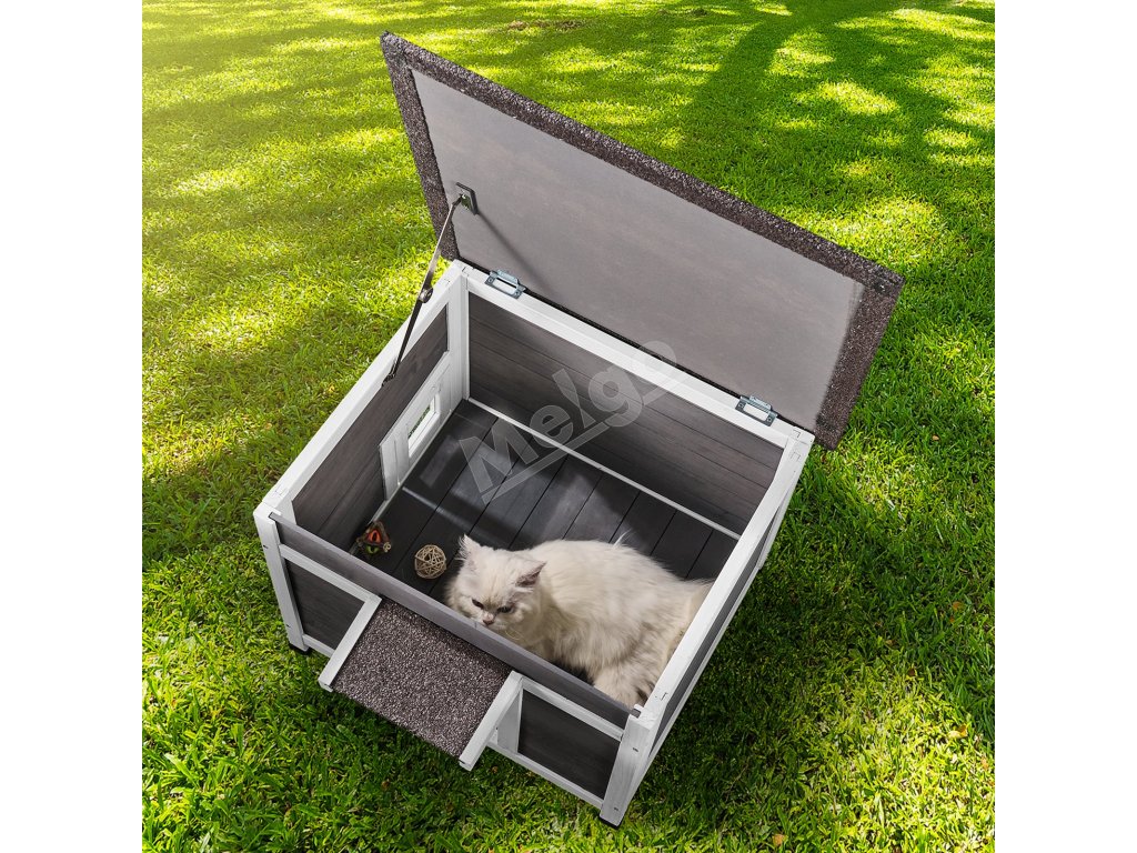 Tento drevený domček pre mačky je vhodný do interiéru aj exteriéru. Je ideálny na trávnik, záhradu, balkón a dvor a poskytuje vašej mačke útulný priestor na odpočinok a hry.