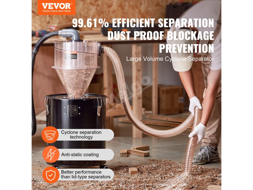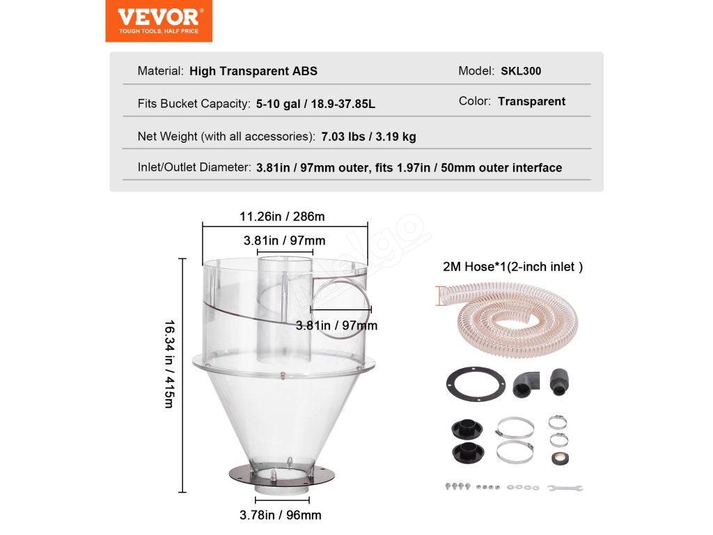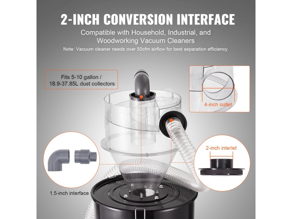 Cyklónový odlučovač prachu 4" s 2" spojkou pre nádoby 18.9–37.85 l