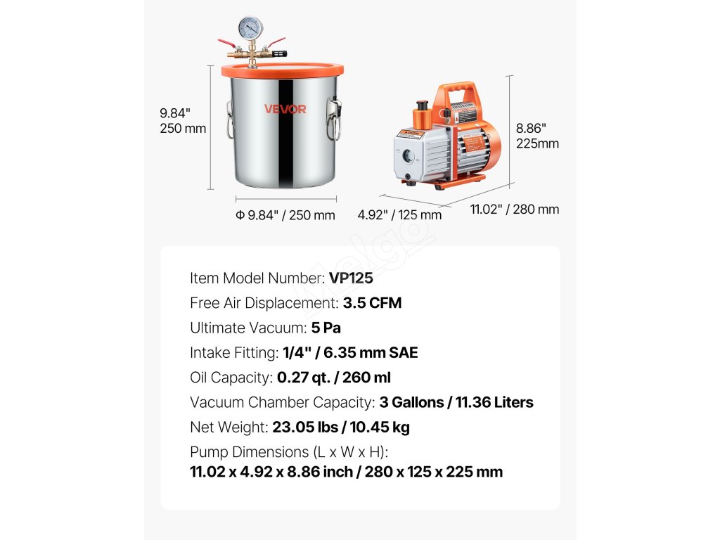 | Kapacita vákuovej komory | 3 galóny/11,36 litra |