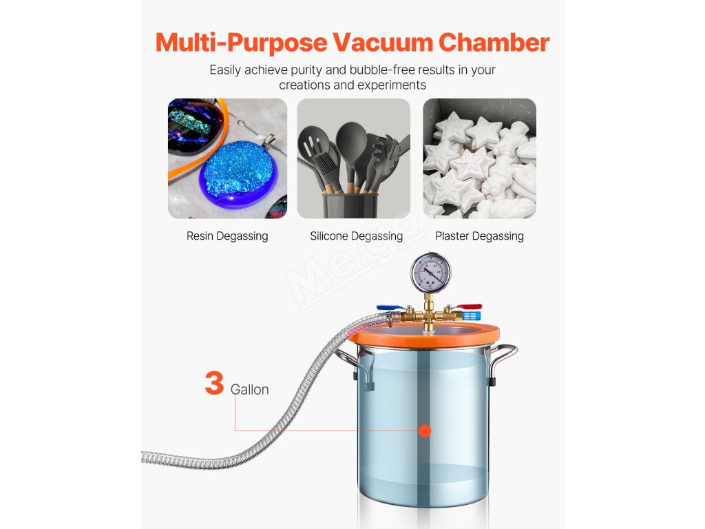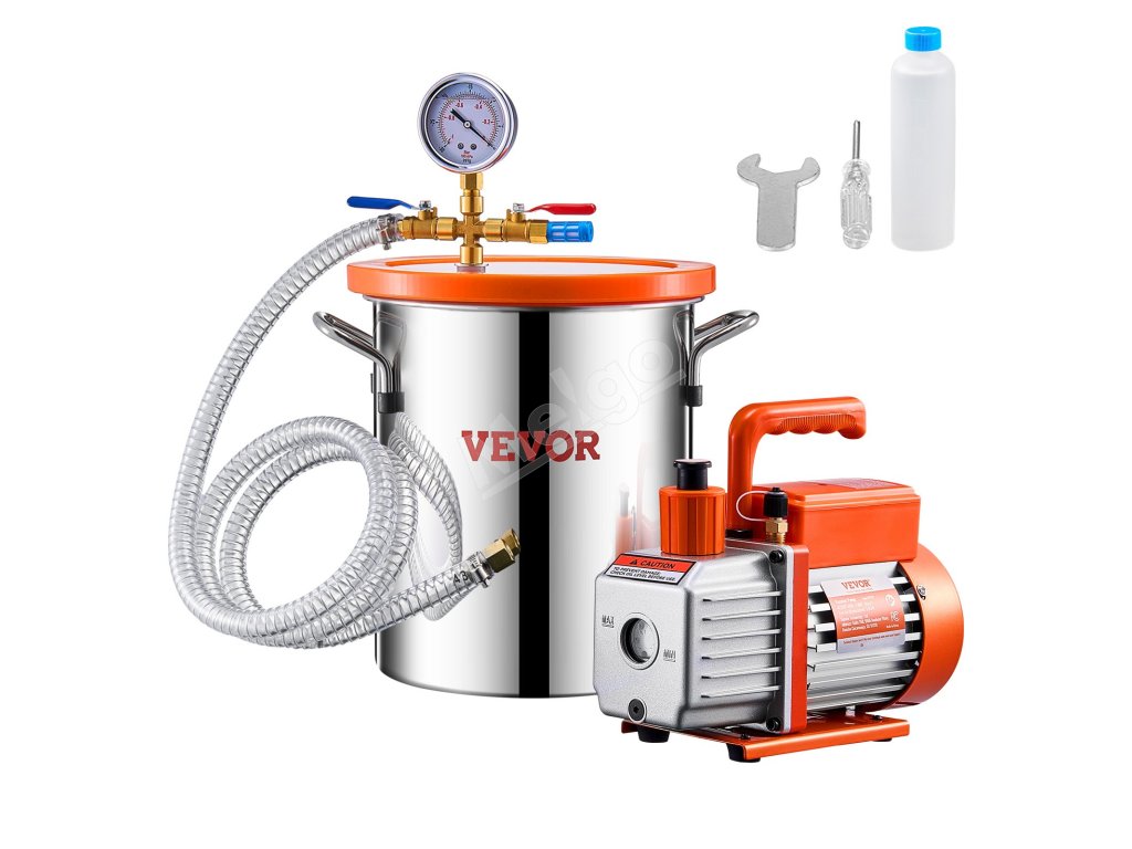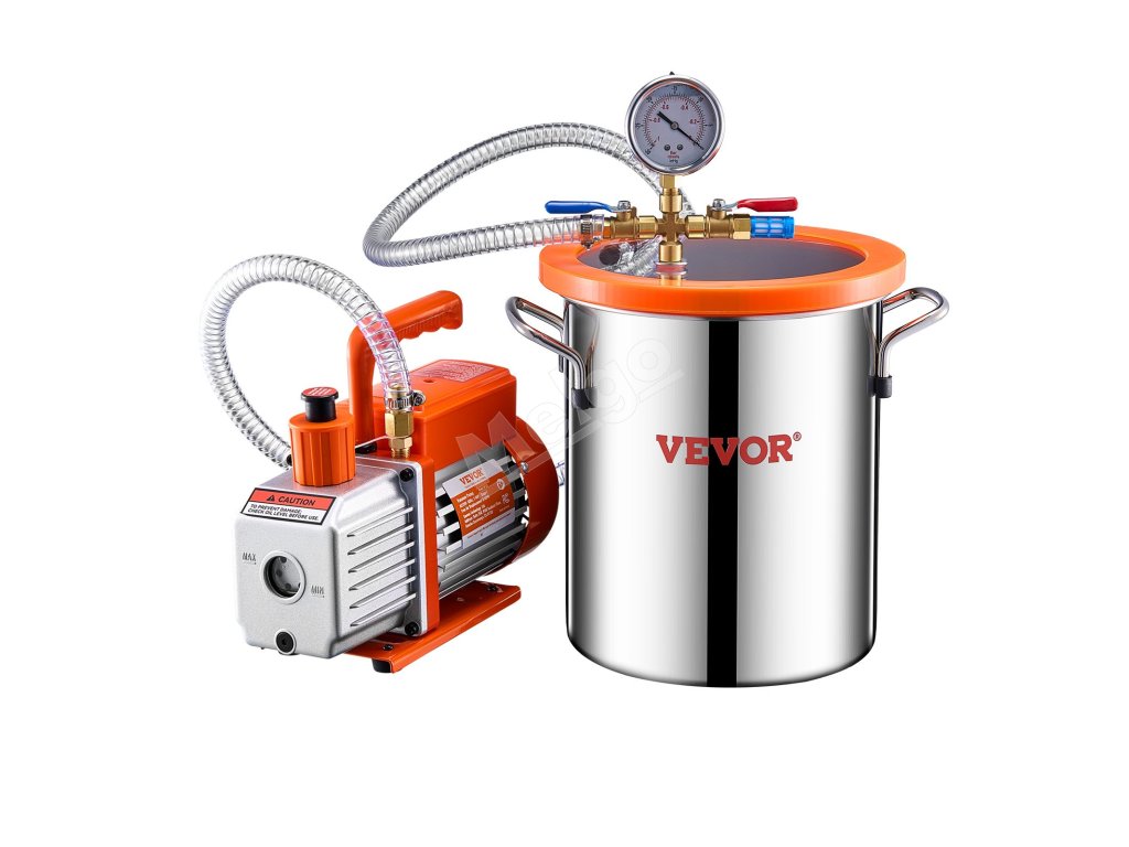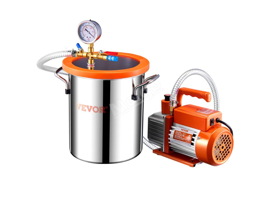 Naša súprava čerpadla s vákuovou komorou zakaždým zabezpečí rýchle a dôkladné odplynenie vďaka 4-stupňovému motoru z čistej medi a maximálnemu vákuu 5 Pa. Vákuová komora s objemom 3 galóny z nehrdzavejúcej ocele sa môže pochváliť pôsobivou odolnosťou voči tlaku, zatiaľ čo akrylové veko vám umožní ľahko monitorovať proces odplyňovania.