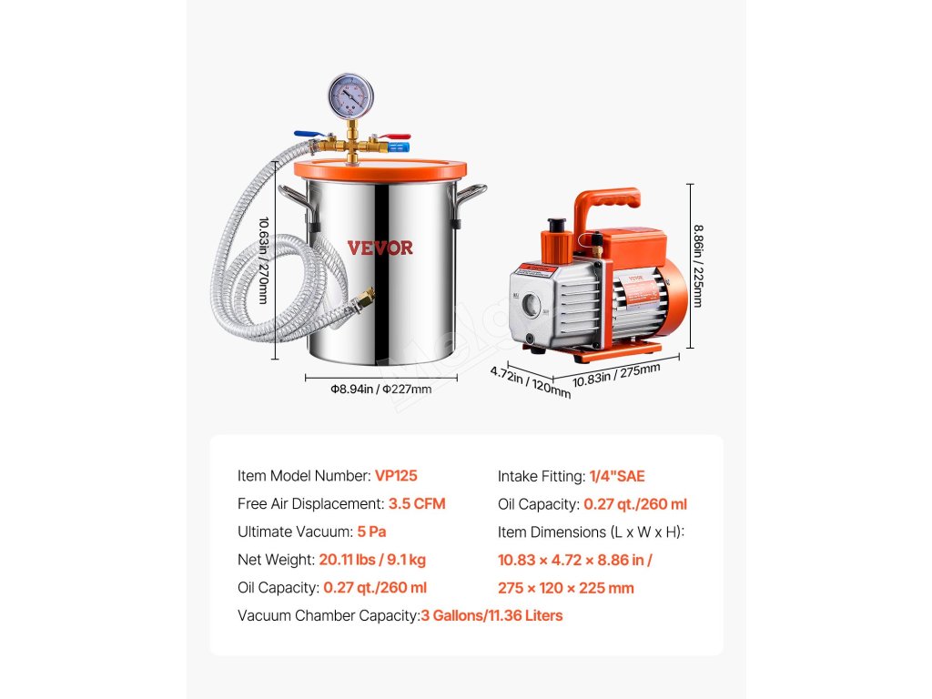 3 galónová vákuová komora so súpravou čerpadla 3,5 CFM