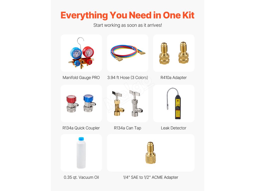 Naša súprava vákuovej pumpy a manometra na klimatizáciu je vybavená všetkým, čo potrebujete na zvládnutie akejkoľvek úlohy údržby klimatizácie. Už nemusíte zháňať jednotlivé nástroje alebo príslušenstvo - táto súprava obsahuje všetko, čo vám ušetrí čas a problémy.
