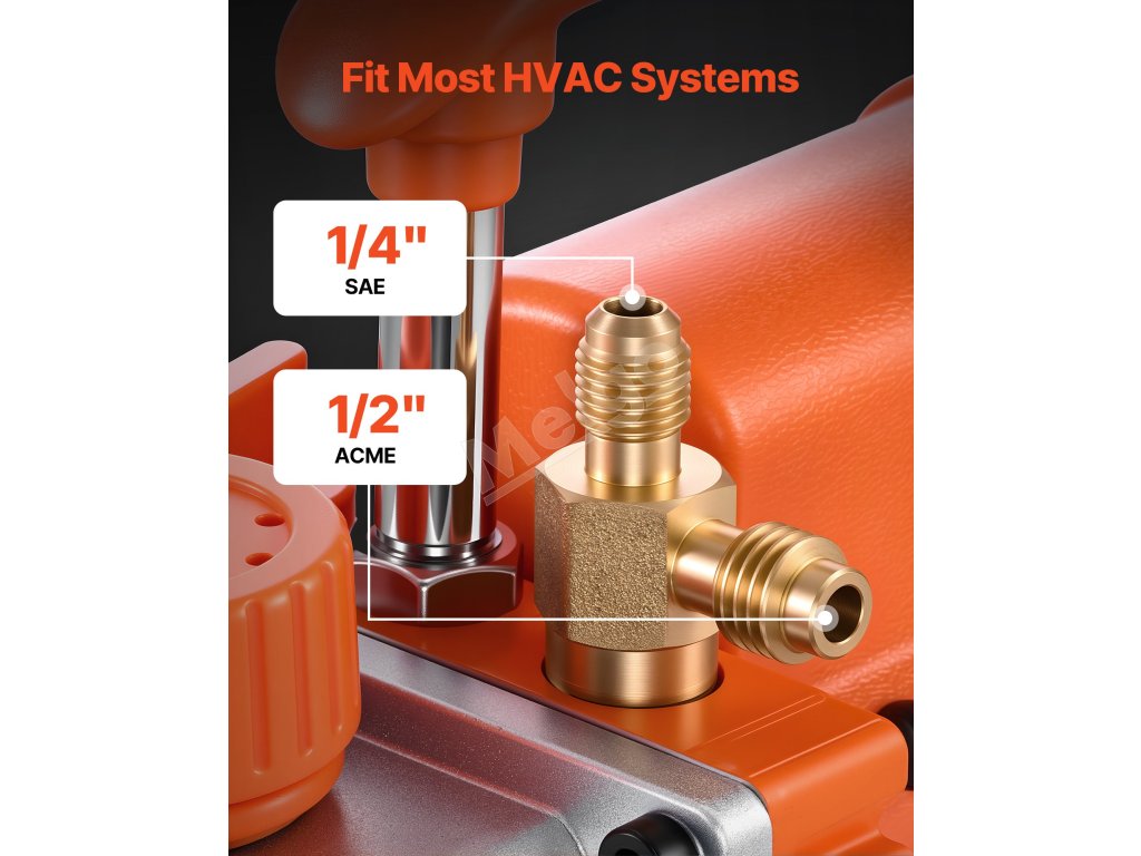 Odpoveď: Štandardné vstupné porty sú 1/4" SAE a 1/2" ACME, čo pokrýva 90 % špecifikácií AC hadíc. Pre špeciálne pripojenia ho môžete spárovať s komerčne dostupnými adaptérmi (napríklad 3/8" NPT).