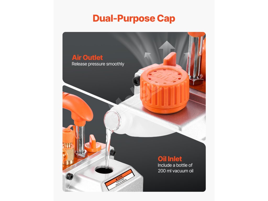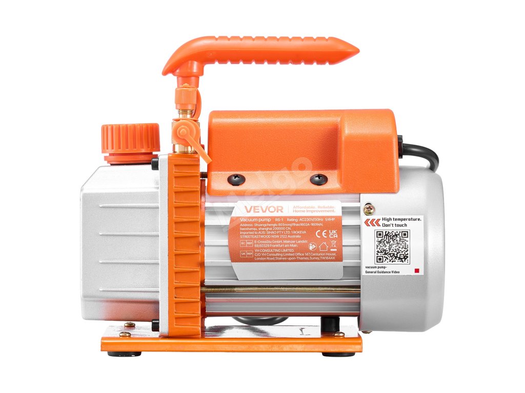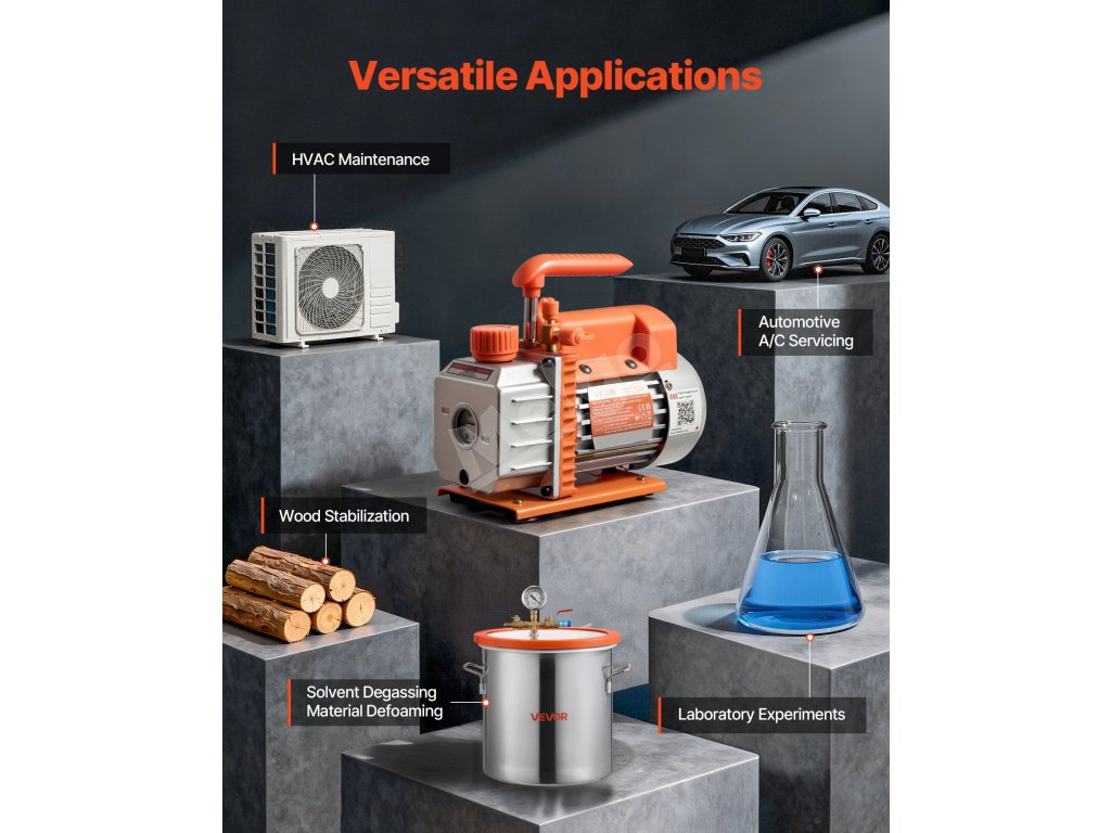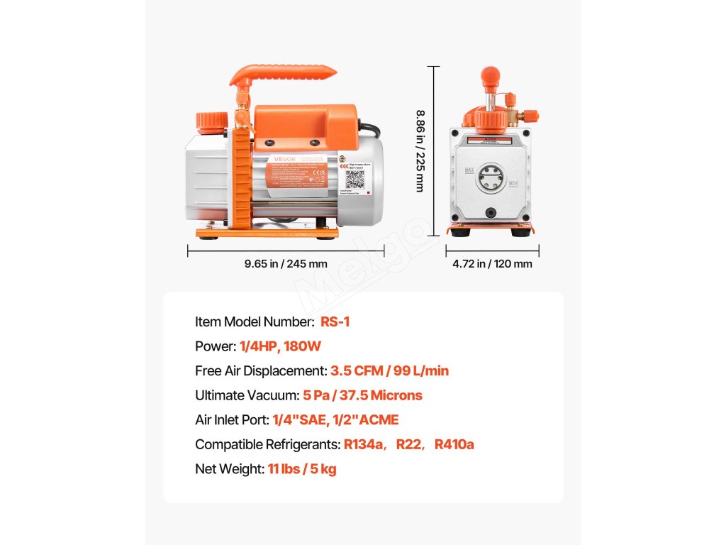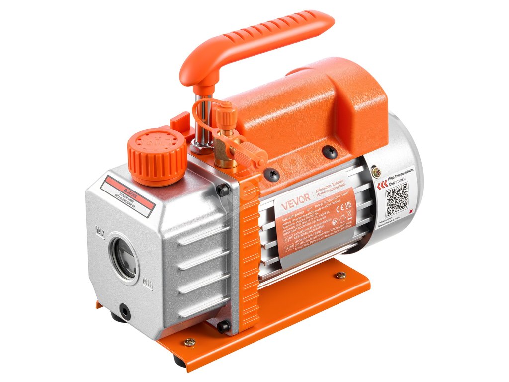 Táto vákuová pumpa s výkonom 1/4 HP poskytuje prietok vzduchu 3,5 CFM a najvyšší podtlak 5 Pa, vďaka čomu sa práca vykoná rýchlo. Vďaka odolnej chladiacej konštrukcii, viditeľnému okienku na olej a viacerým možnostiam vstupu vzduchu je ideálna na servis vzduchotechniky, odplyňovanie živice a stabilizáciu dreva.