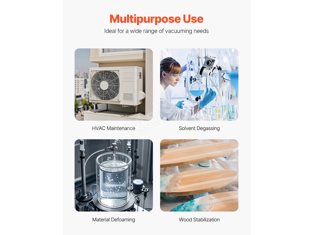 Či už vykonávate servis domácich systémov HVAC, opravujete chladiace systémy automobilov alebo riešite priemyselné aplikácie, táto automobilová vákuová pumpa AC je skonštruovaná tak, aby spĺňala vaše potreby. Je to ideálny nástroj do širokého spektra prostredí.