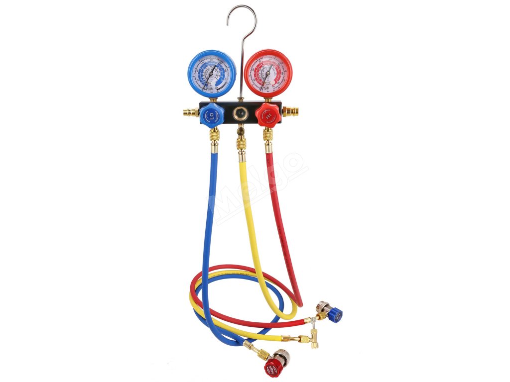 Kolektorový manometer obsahuje bežne používanú stupnicu chladiva, ktorá je vhodná na meranie rôznych zariadení.