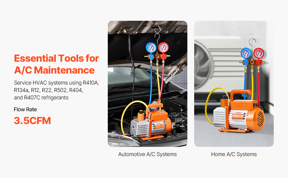 Či už vykonávate servis domácich systémov HVAC, opravujete chladiace systémy automobilov, alebo riešite priemyselné aplikácie, táto súprava vákuovej pumpy AC a manometra rozdeľovača je skonštruovaná tak, aby spĺňala vaše potreby. Je to ideálny nástroj do širokého spektra prostredí.