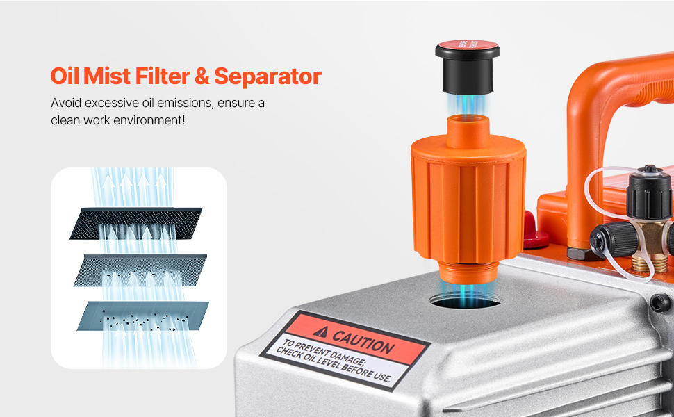 Rozlúčte sa so znečistením olejovou hmlou. Zabudovaný filtračný systém našej klimatizačnej vývevy znižuje uvoľňovanie olejovej hmly do ovzdušia, čím pomáha udržiavať čisté a bezpečné pracovné prostredie.