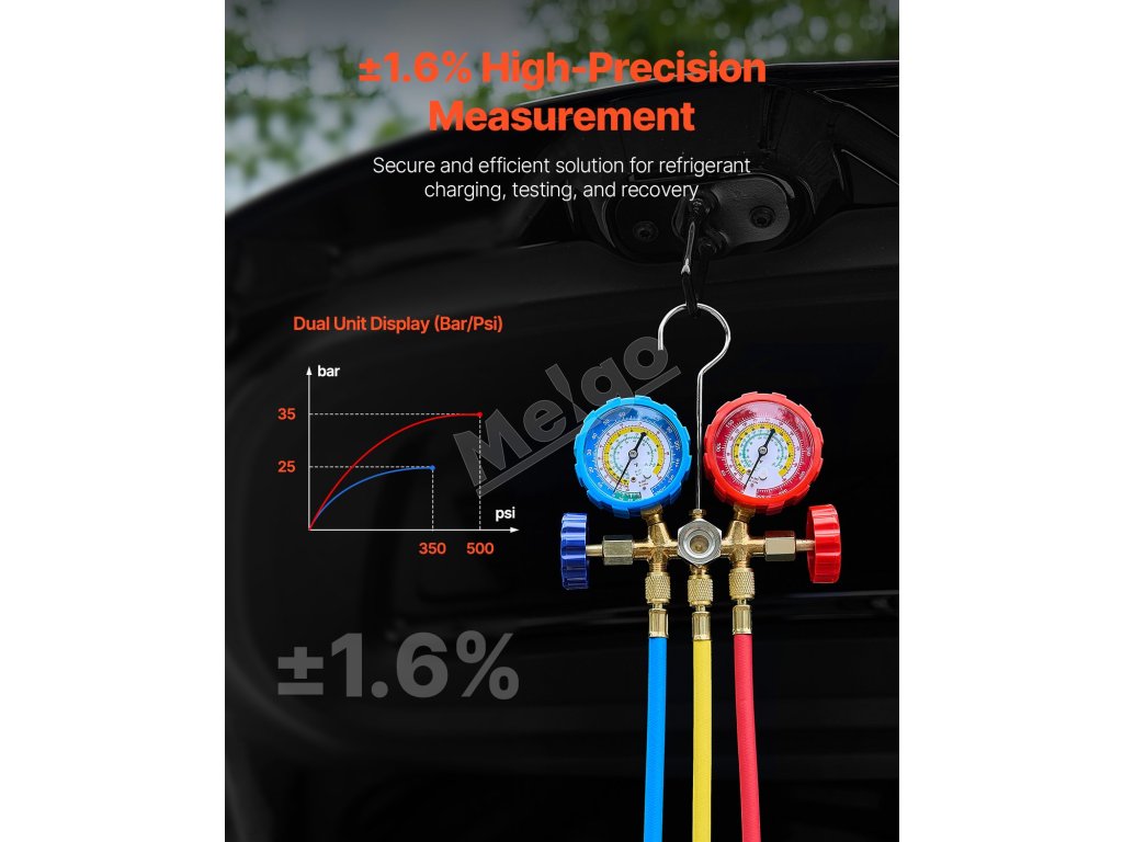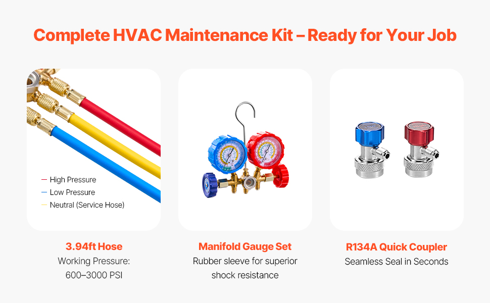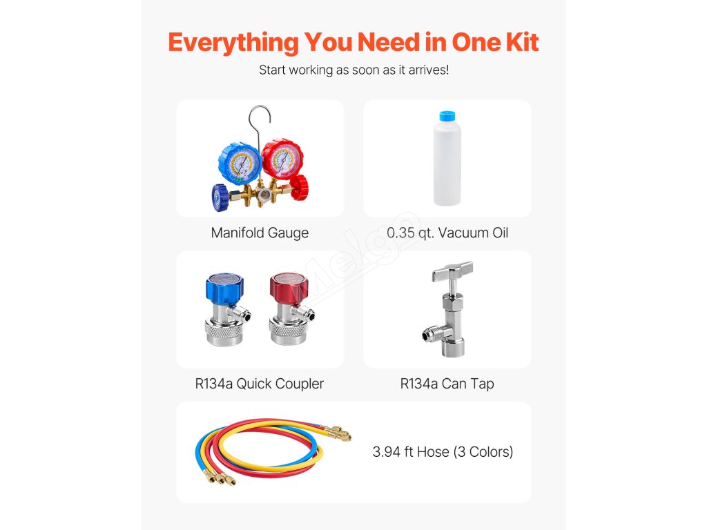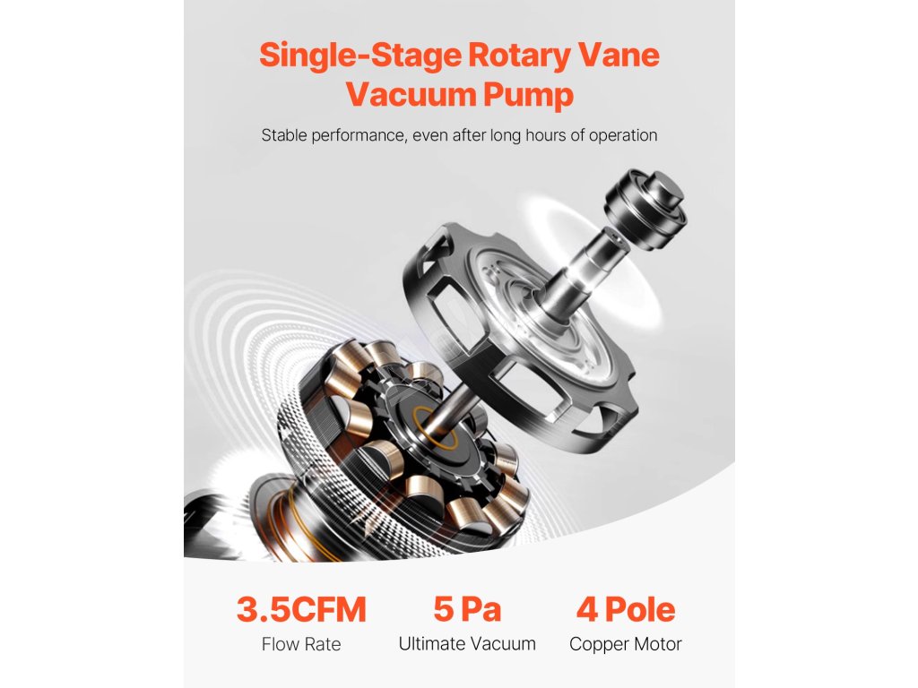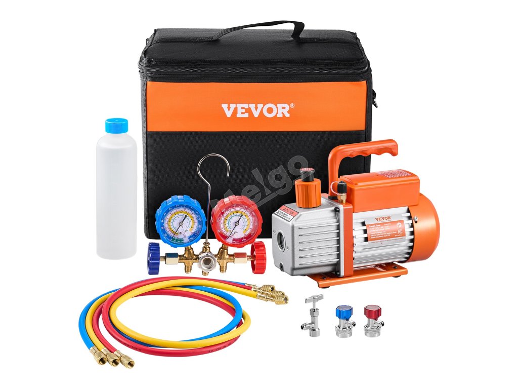 Naša súprava vákuovej pumpy 3,5CFM, ktorá je špeciálne navrhnutá pre profesionálov v oblasti HVAC a domácich majstrov, obsahuje manometer, 3,94 ft trojfarebnú hadicu a sadu rýchlospojok R134a. Vďaka maximálnemu podtlaku 5 Pa a motoru z čistej medi je kompatibilná s chladivami R134a, R22, R12 a R502.