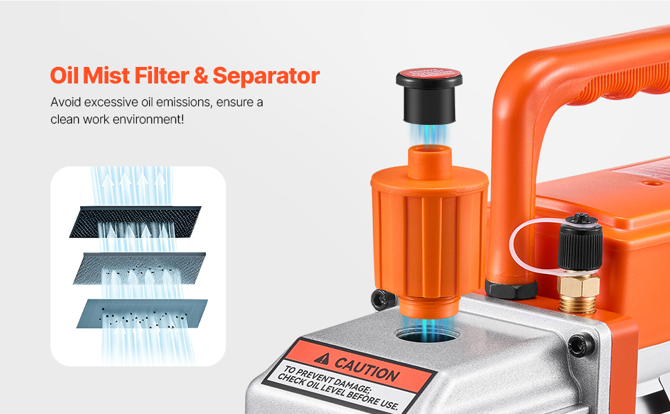 Rozlúčte sa so znečistením olejovou hmlou. Zabudovaný filtračný systém našej klimatizačnej vývevy znižuje uvoľňovanie olejovej hmly do ovzdušia, čím pomáha udržiavať čisté a bezpečné pracovné prostredie.