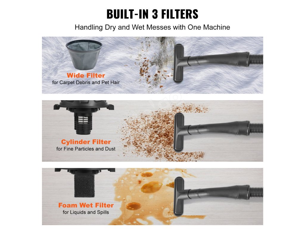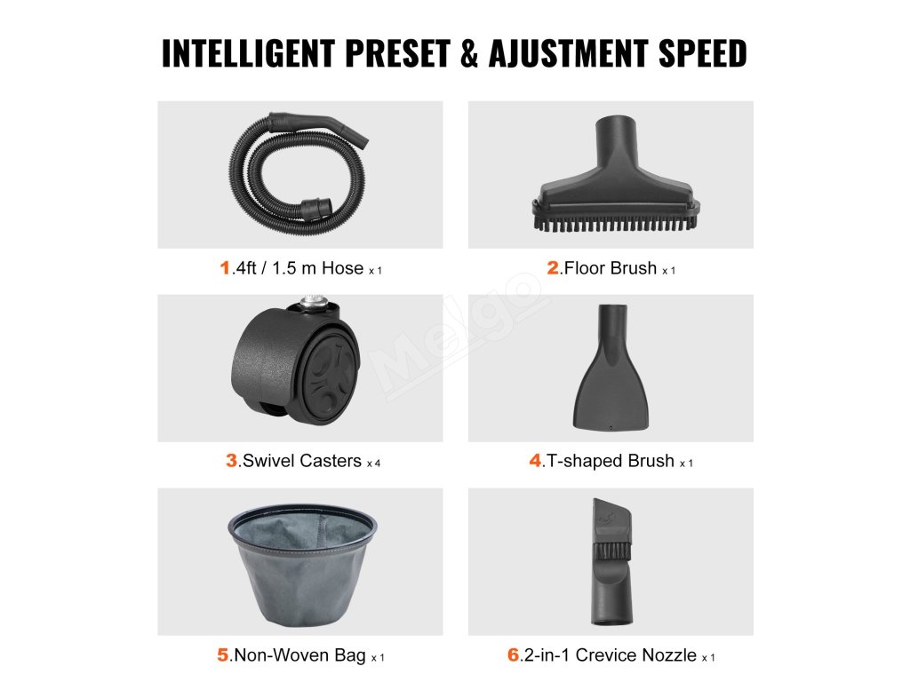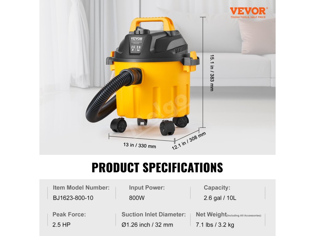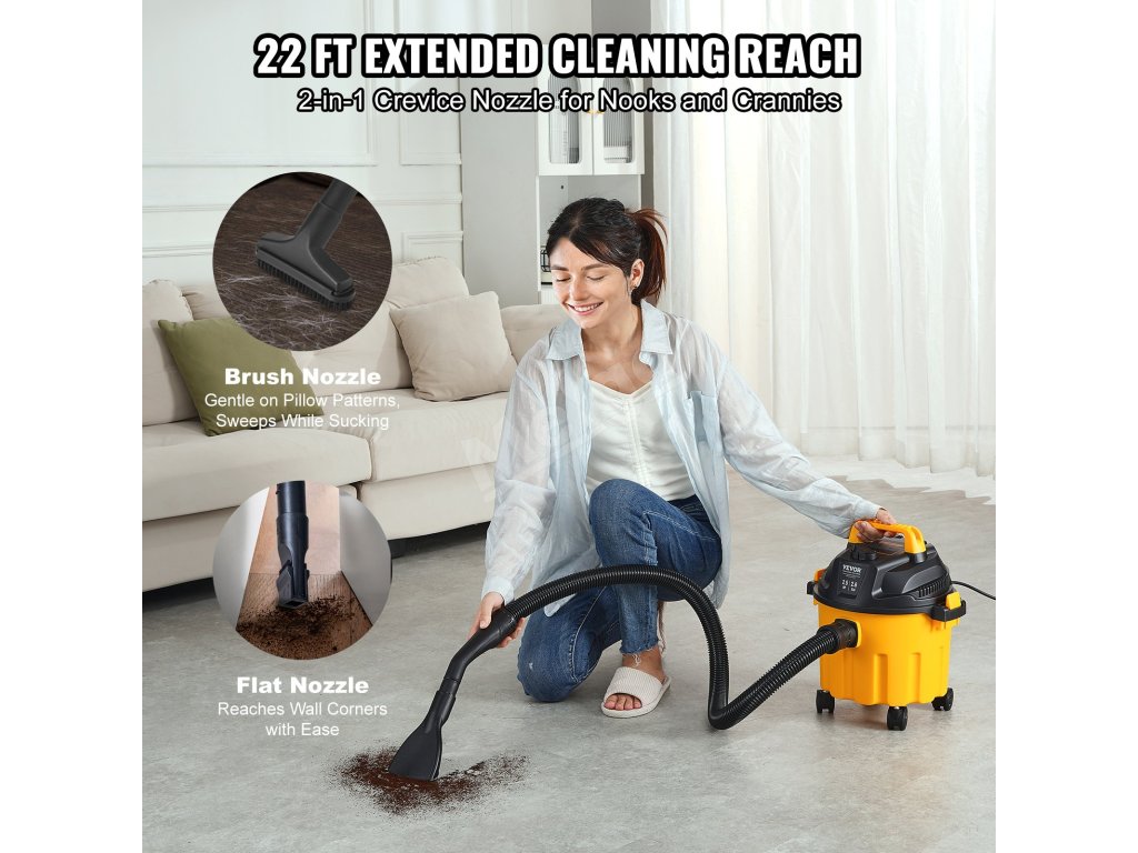 Dielenský mokro-suchý vysávač 10 l, 2 peak hp, s fúkaním a kolieskami
