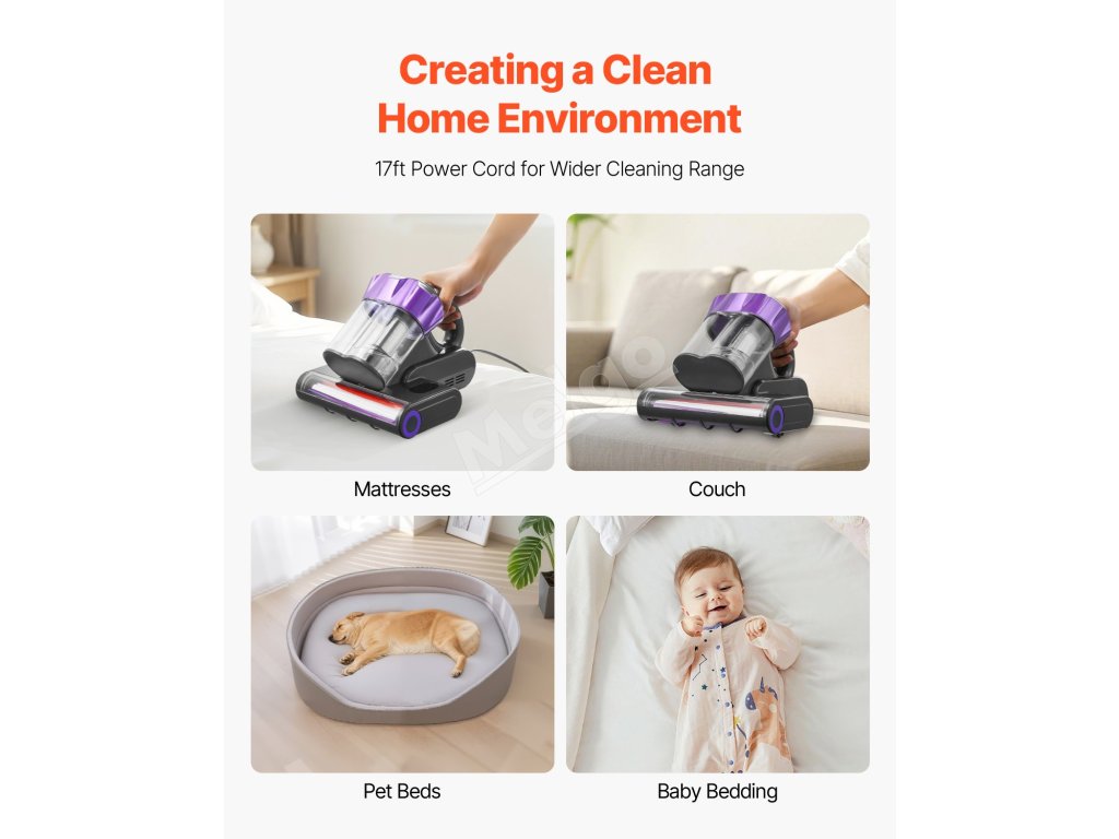 Tento vysávač na matrace s pokročilou technológiou čistenia preniká hlboko do lôžkovín a dôkladne odstraňuje vlasy, peľ, prach, kožné šupinky a ďalšie nečistoty. Je ideálnou voľbou pre domácnosti s deťmi a domácimi zvieratami.
