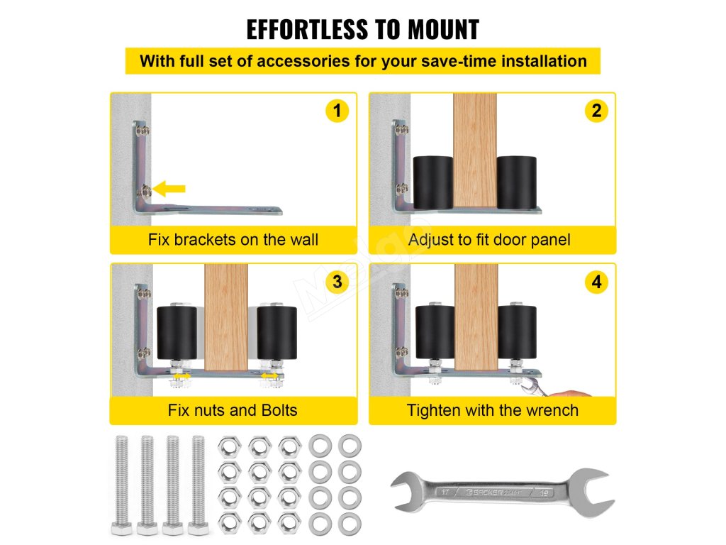 Ak chcete, aby sa vaše posuvné dvere otvárali oveľa ľahšie alebo aby sa pri každom pohybe neposúvali od steny, potom sú tieto vodiace valčeky VEVOR práve pre vás. Naše zariadenie je vyrobené z odolnej pozinkovanej montážnej konzoly s dvoma nylonovými valčekmi, ktoré vám zaručia plynulý posuv a udržia vaše posuvné dvere v chode po celé roky.