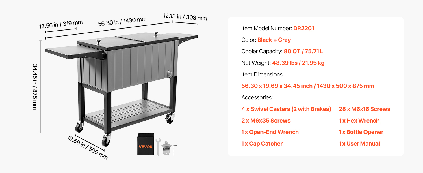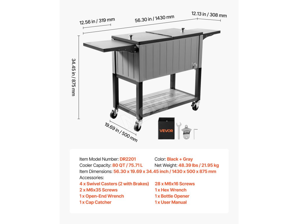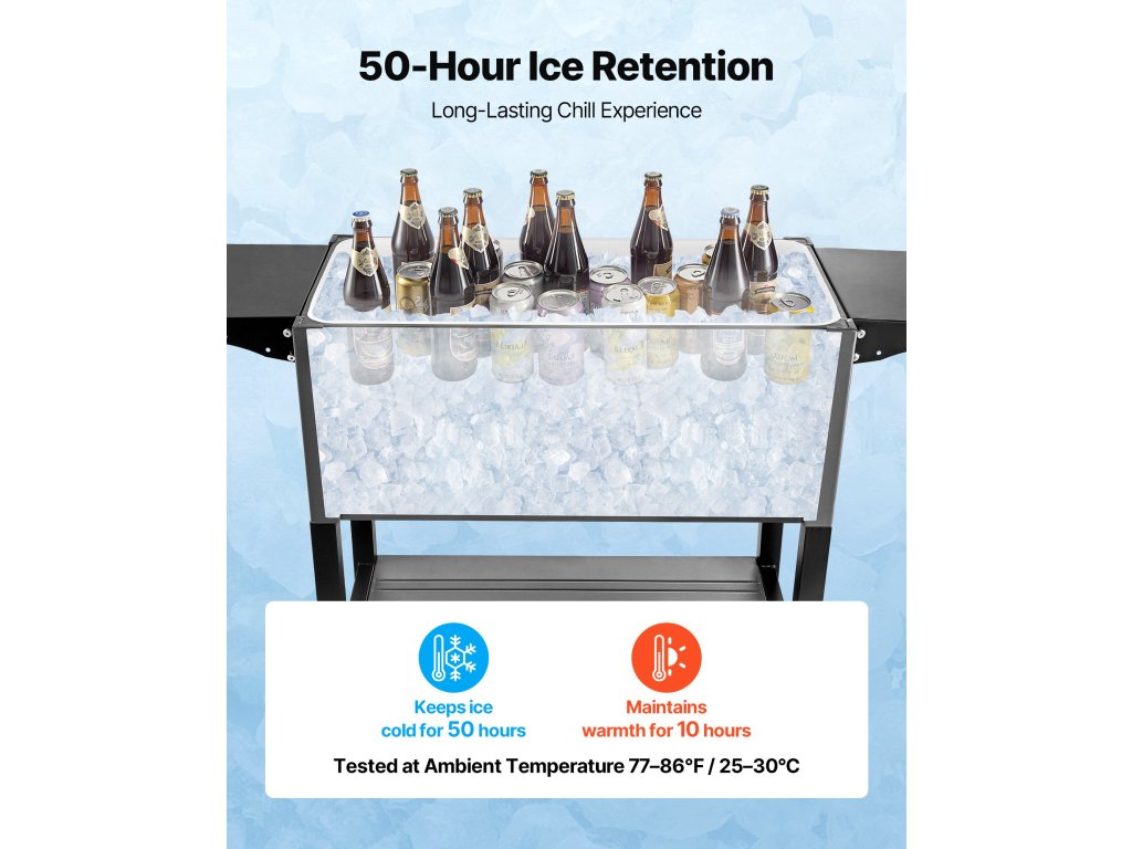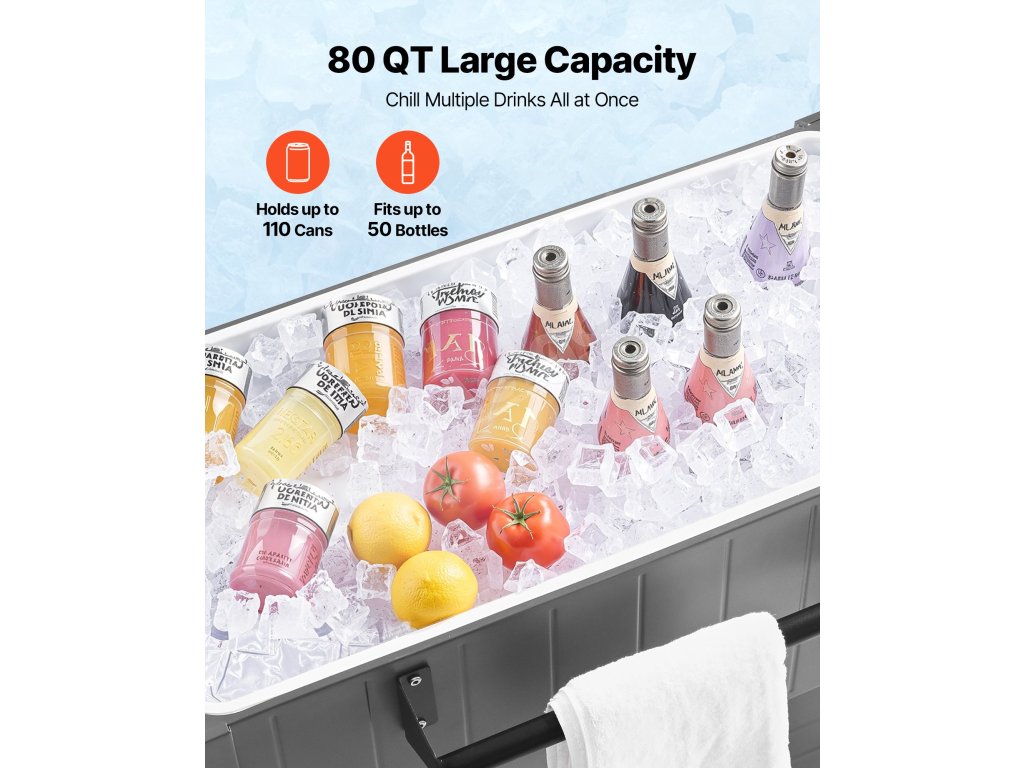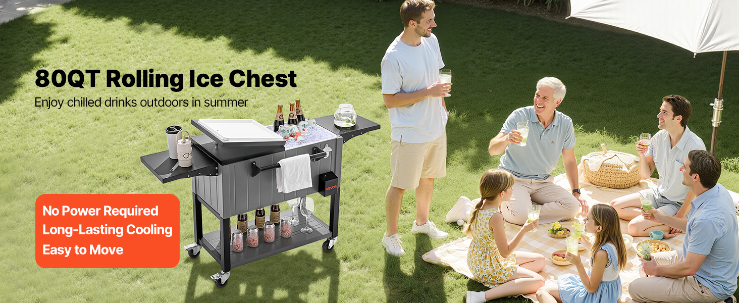 Tento vonkajší chladiaci vozík má veľkú kapacitu 80 QT, do ktorej sa zmestí veľa piva, nápojov a ľadu. Nepotrebuje elektrickú energiu, udržiava predmety chladné dlhé hodiny a ľahko sa premiestňuje, čím prináša osviežujúci pôžitok vonku.