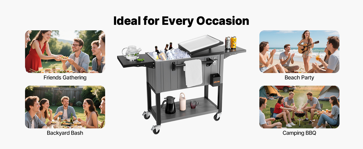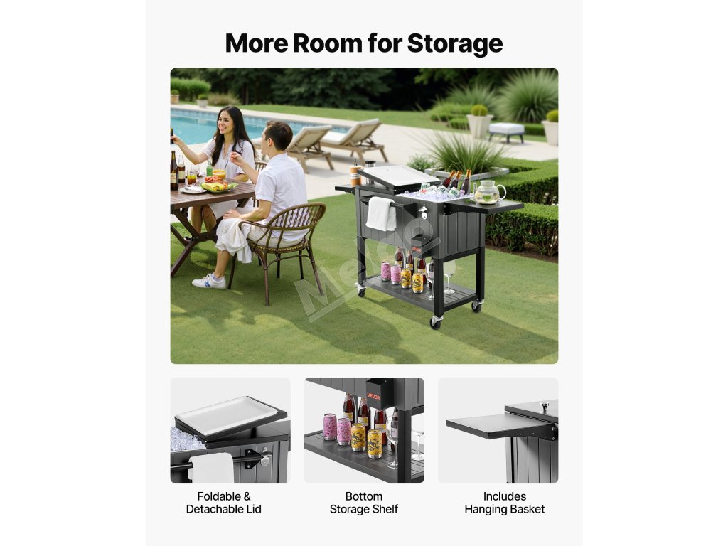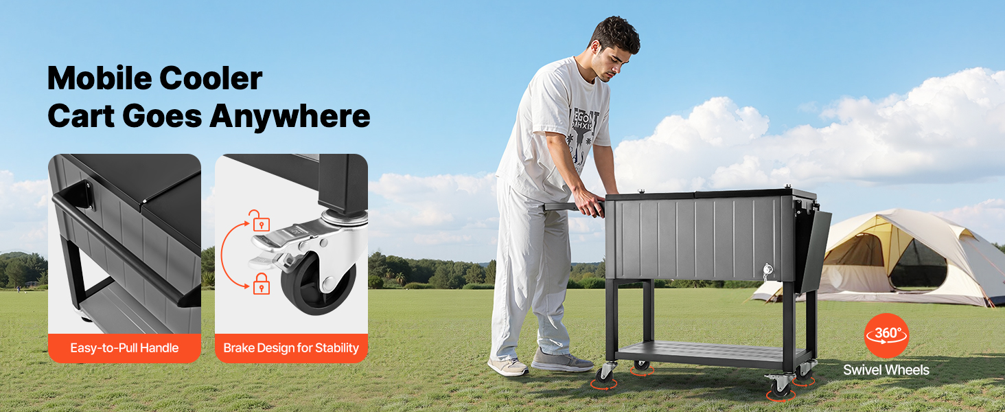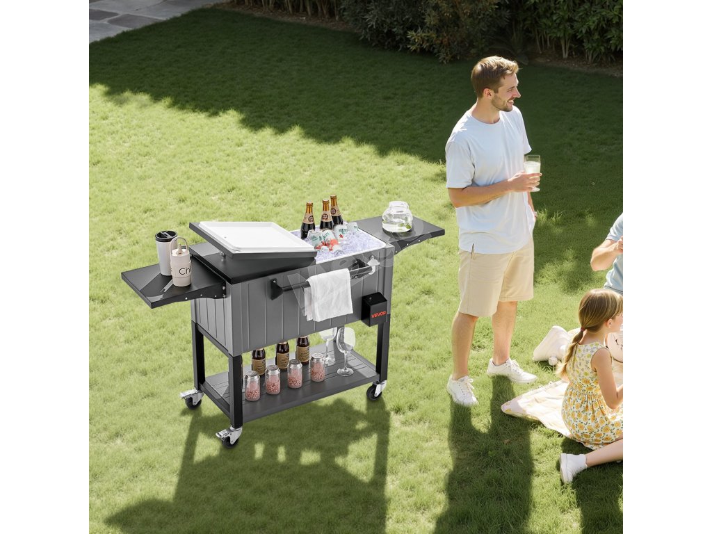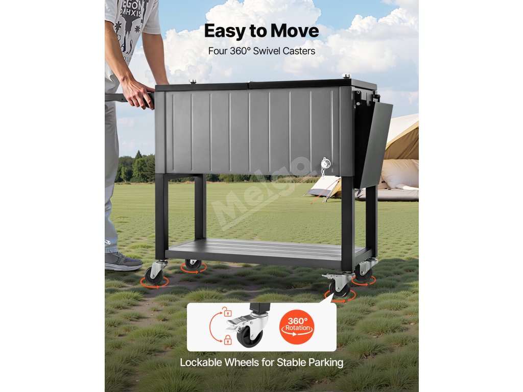Tento pojazdný chladiaci vozík, ktorý je ideálny na stretnutia s priateľmi, plážové párty, podujatia na záhrade alebo grilovanie v kempe, udrží vaše nápoje chladné a spríjemní každé letné stretnutie.