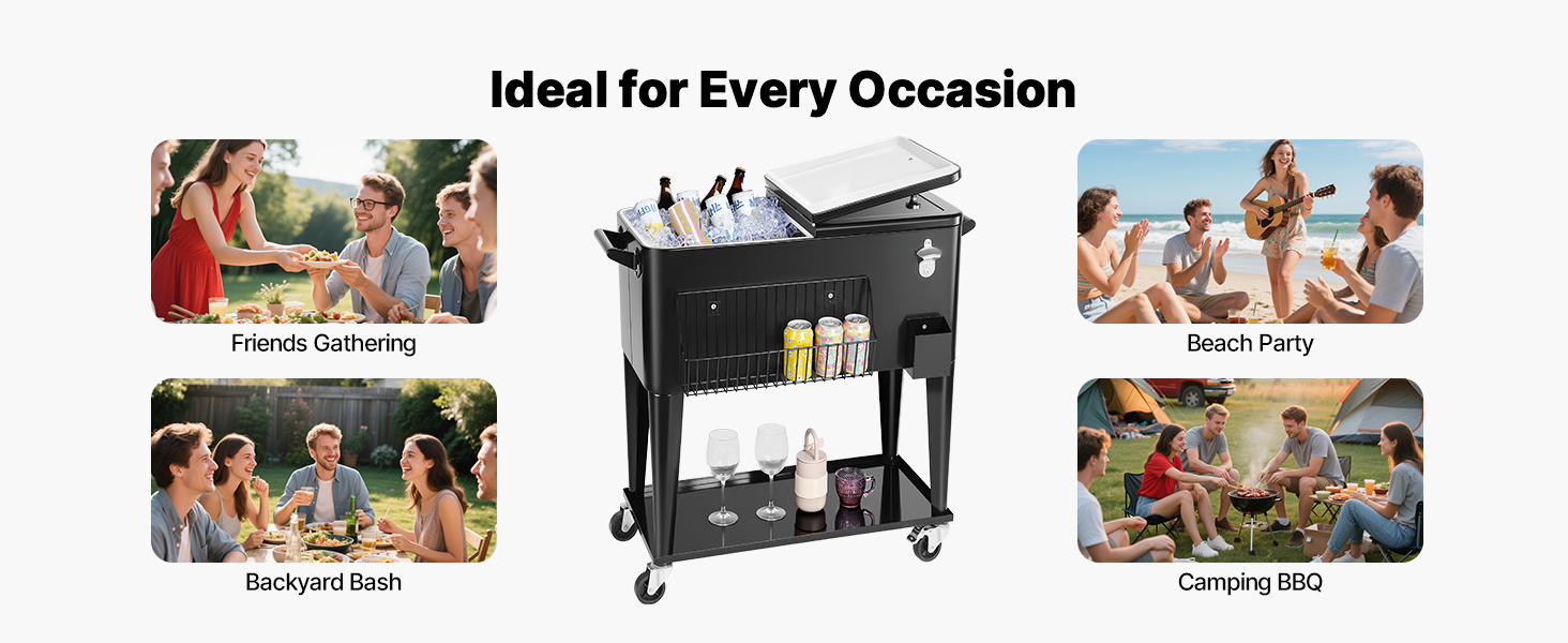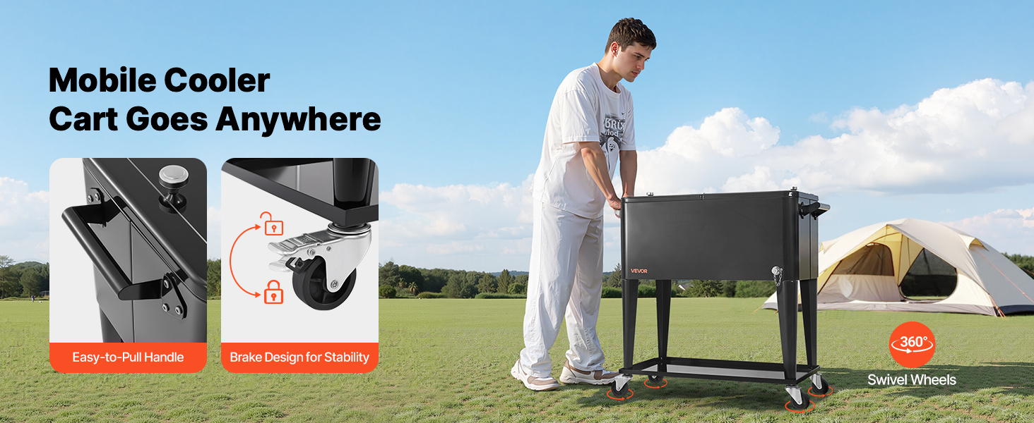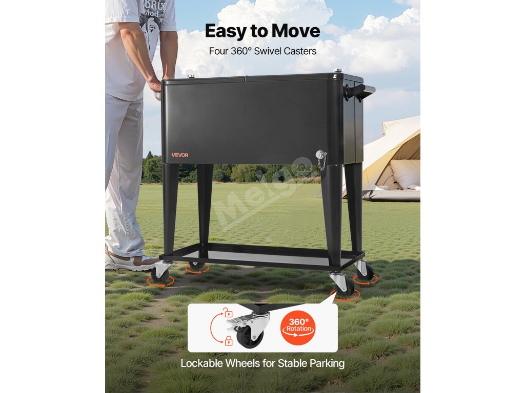 Tento pojazdný chladiaci vozík, ktorý je ideálny na stretnutia s priateľmi, plážové párty, podujatia na záhrade alebo grilovanie v kempe, udrží vaše nápoje chladné a spríjemní každé letné stretnutie.