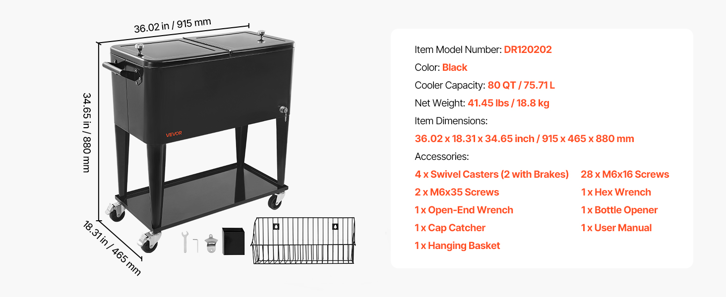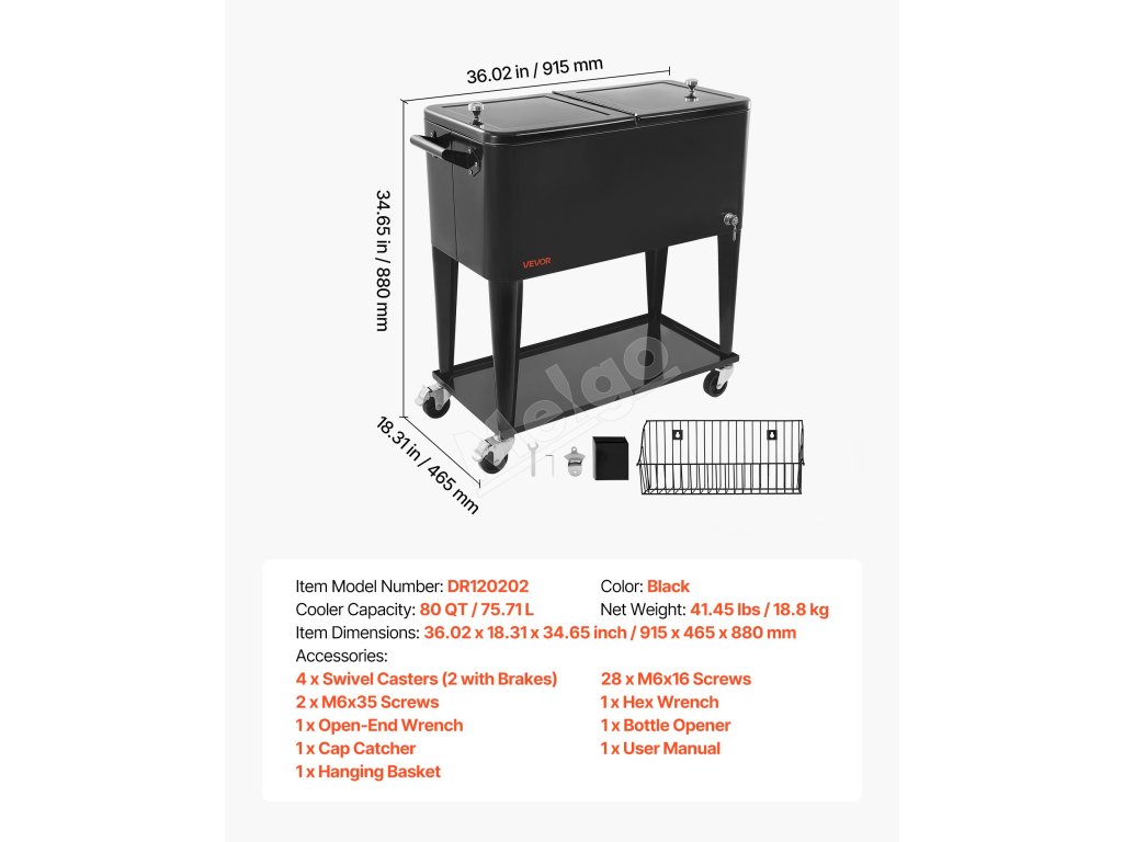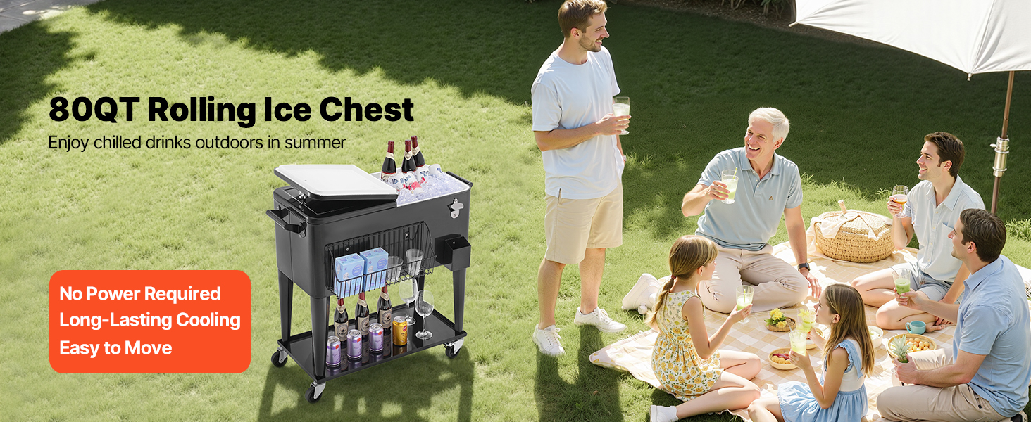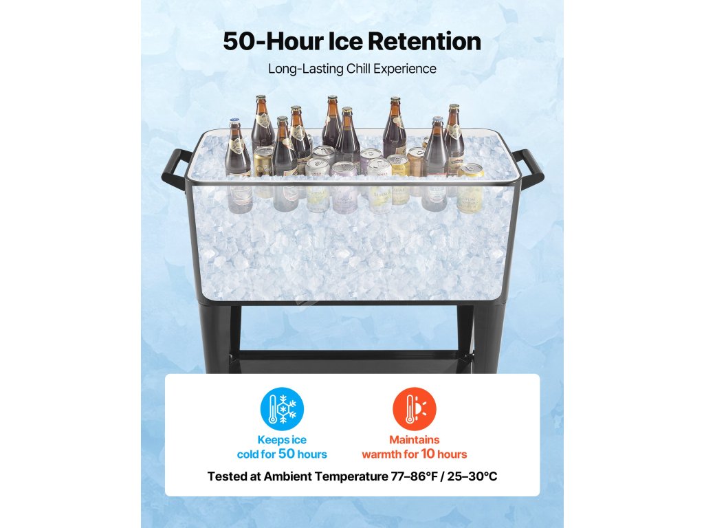 Tento vonkajší chladiaci vozík má veľkú kapacitu 80 QT, do ktorej sa zmestí veľa piva, nápojov a ľadu. Nepotrebuje elektrickú energiu, udržiava predmety chladné dlhé hodiny a ľahko sa premiestňuje, čím prináša osviežujúci pôžitok vonku.