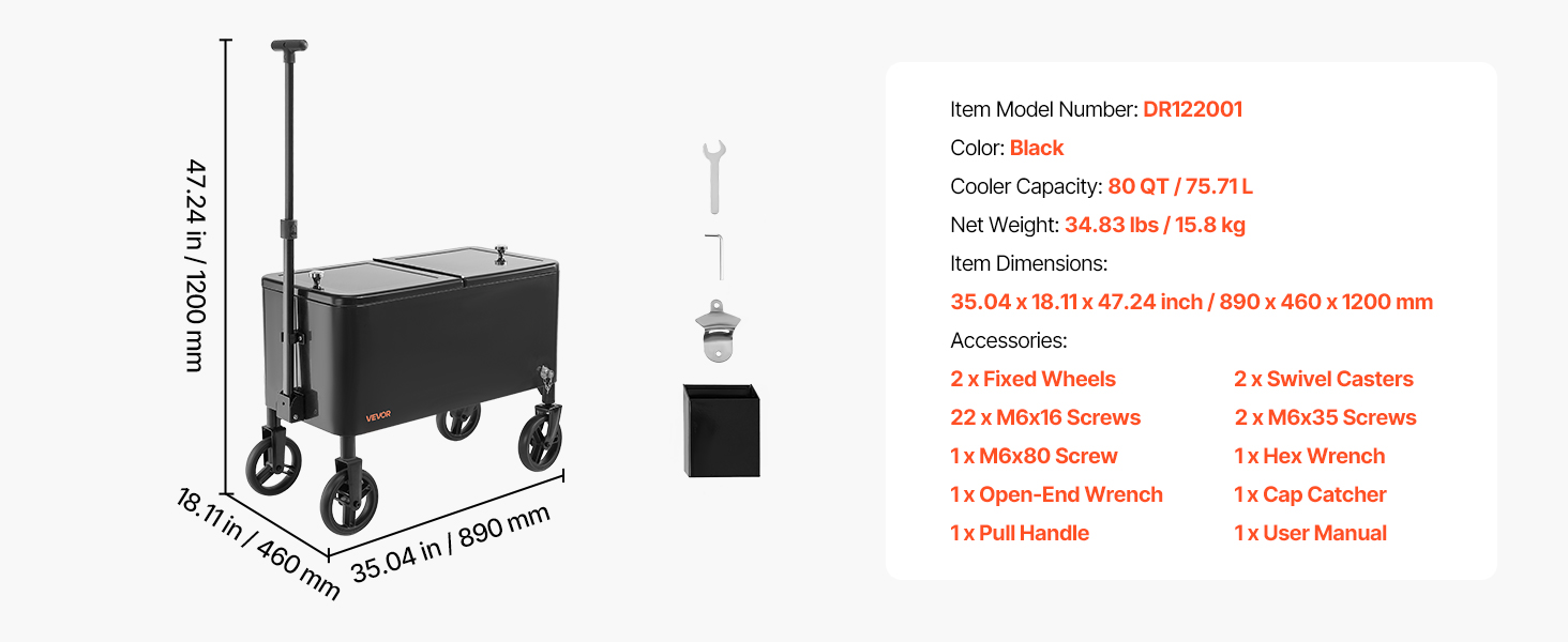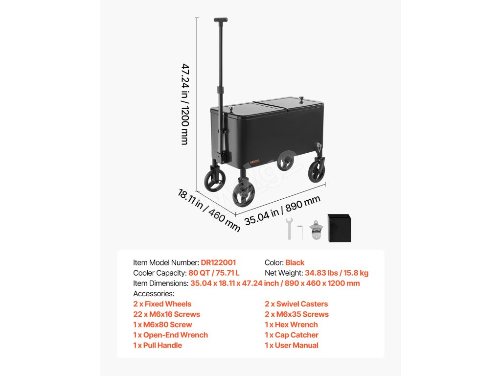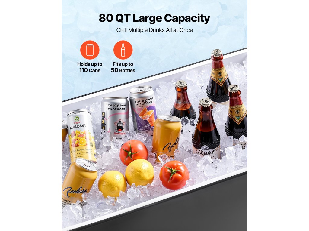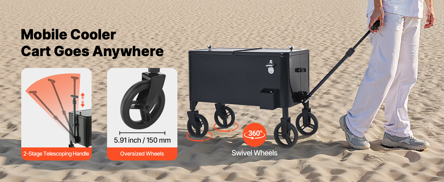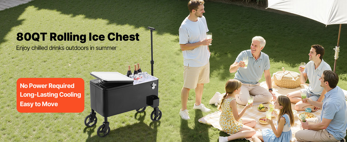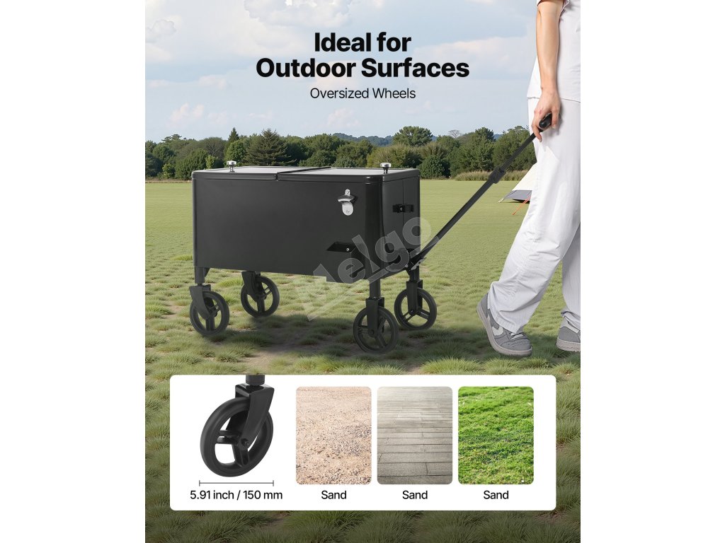 Tento vonkajší chladiaci vozík má veľkú kapacitu 80 QT, do ktorej sa zmestí veľa piva, nápojov a ľadu. Nepotrebuje elektrickú energiu, udržiava predmety chladné dlhé hodiny a ľahko sa premiestňuje, čím prináša osviežujúci pôžitok vonku.