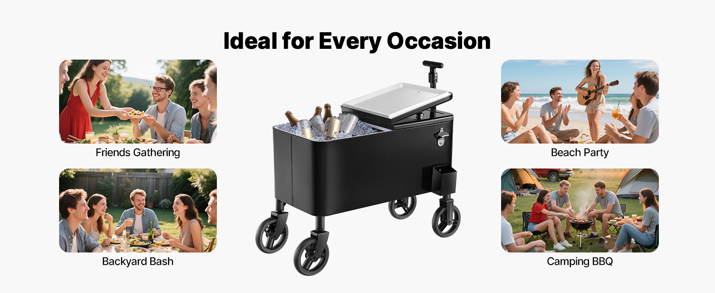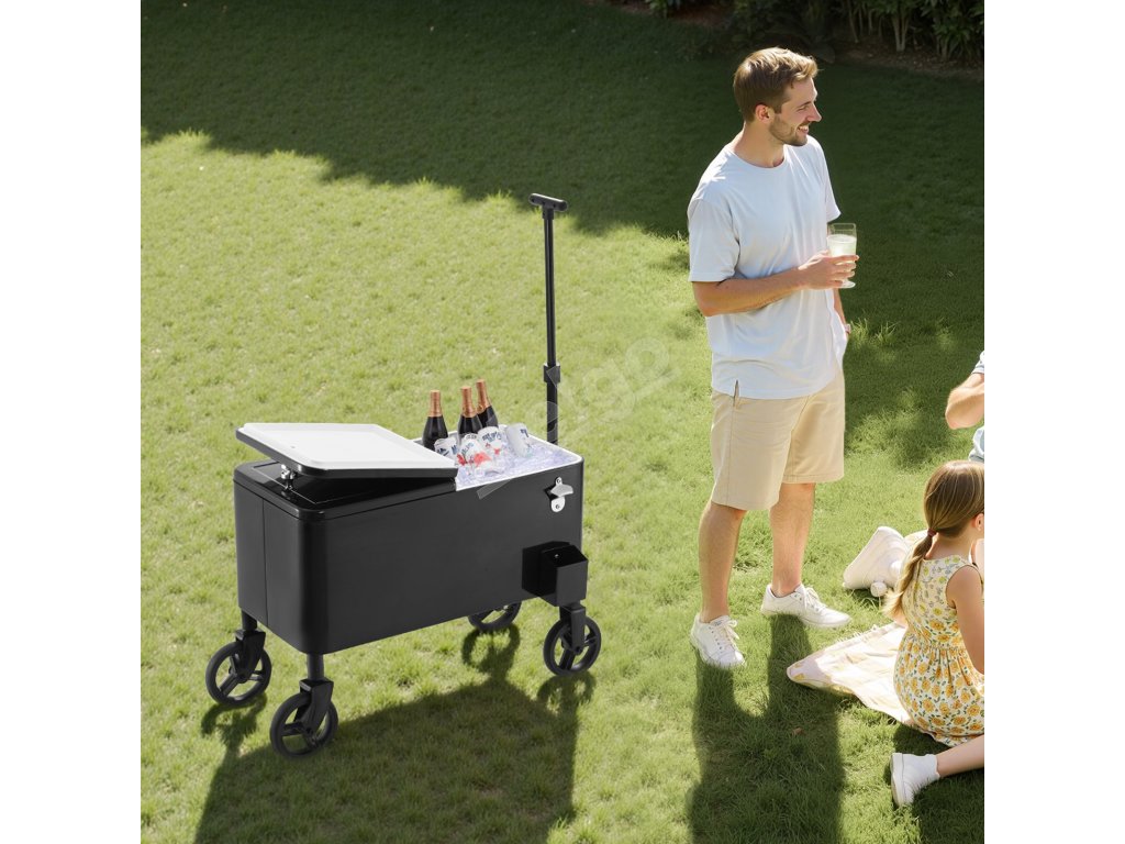 Tento pojazdný chladiaci vozík, ktorý je ideálny na stretnutia s priateľmi, plážové párty, podujatia na záhrade alebo grilovanie v kempe, udrží vaše nápoje chladné a spríjemní každé letné stretnutie.