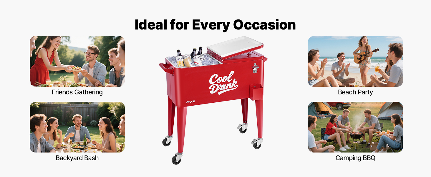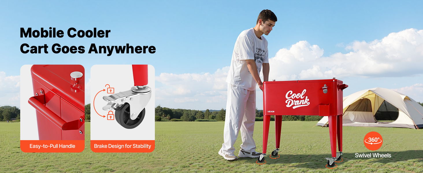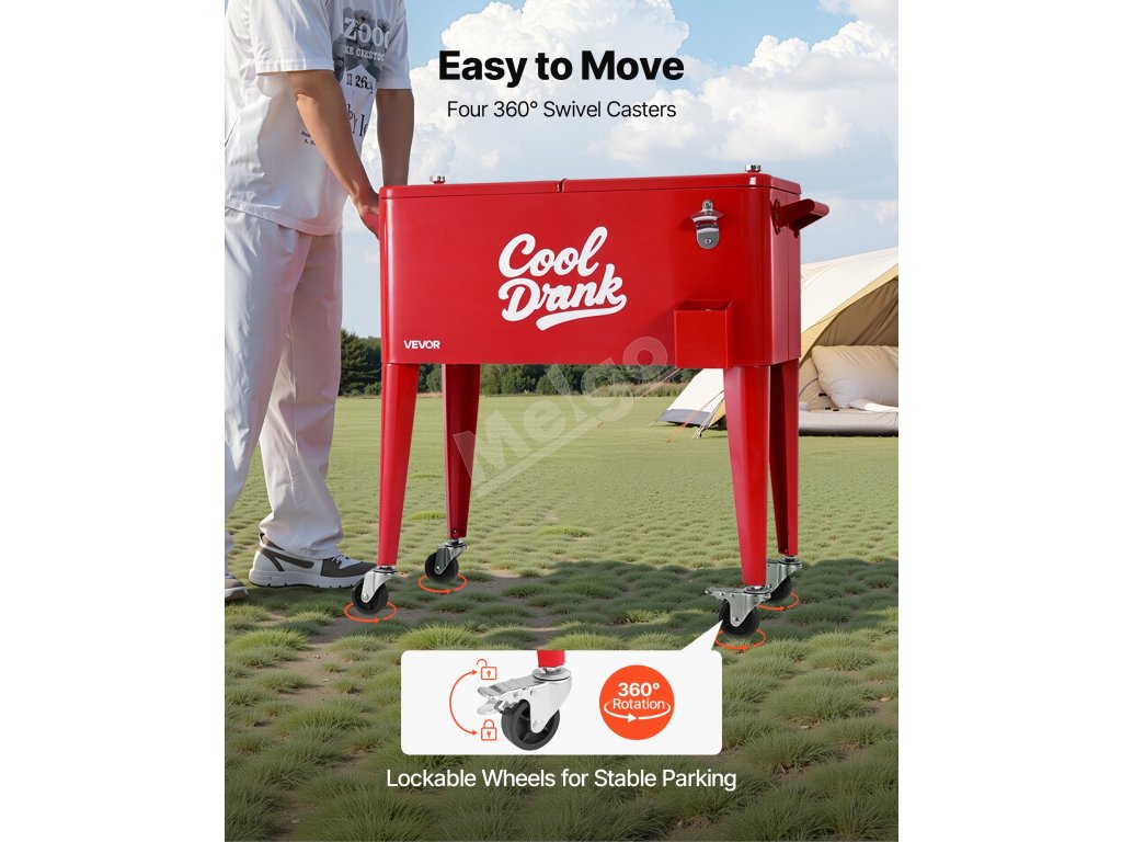 Tento pojazdný chladiaci vozík, ktorý je ideálny na stretnutia s priateľmi, plážové párty, podujatia na záhrade alebo grilovanie v kempe, udrží vaše nápoje chladné a spríjemní každé letné stretnutie.