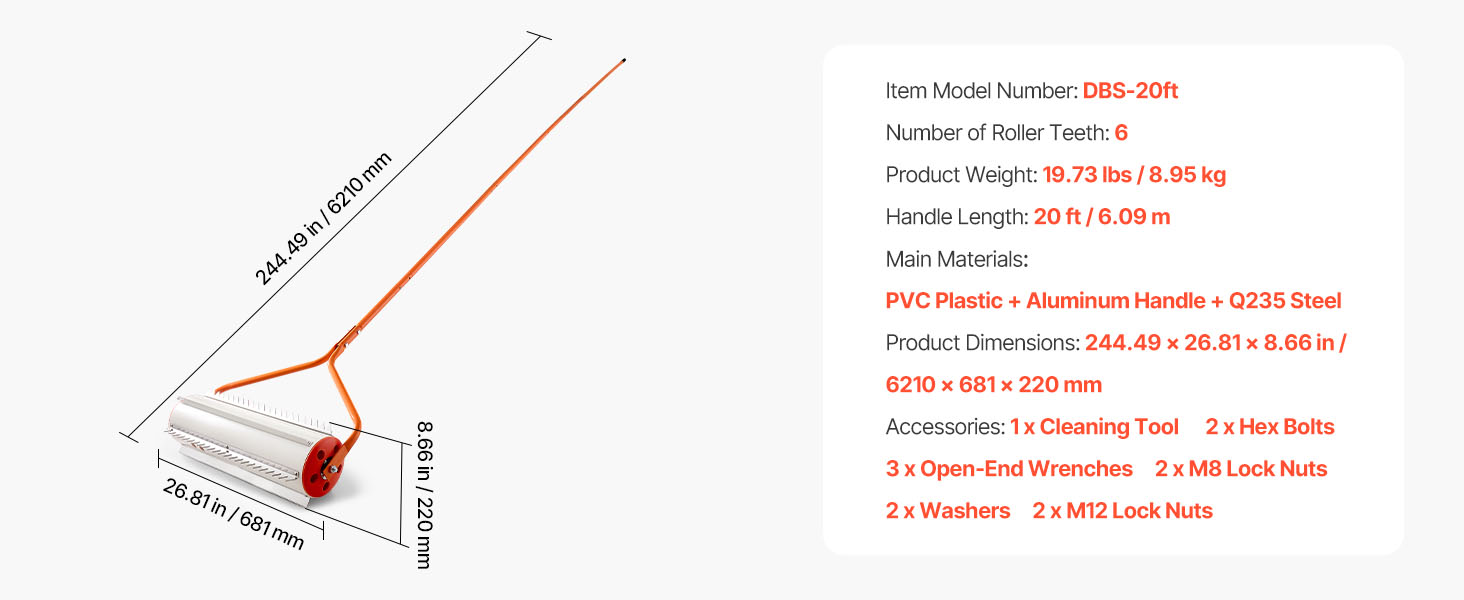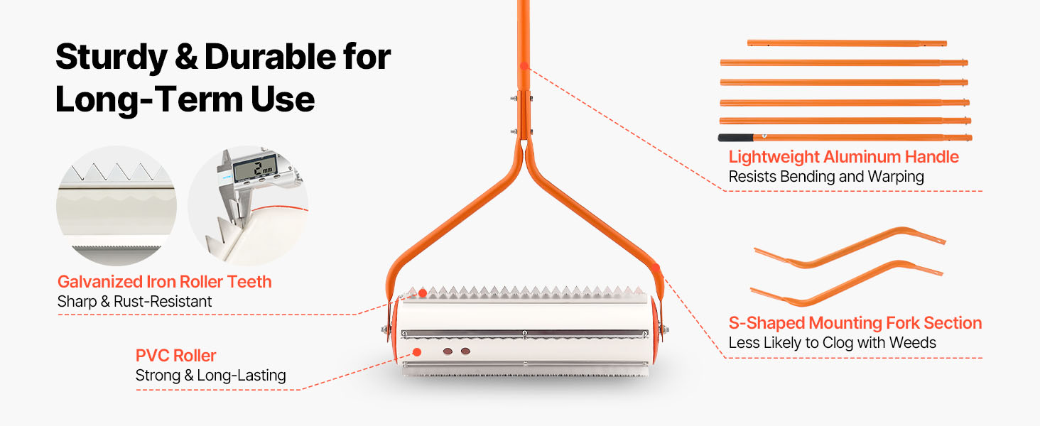 Nastaviteľná rukoväť nášho valca na odstraňovanie vodných burín vám umožňuje odstraňovať buriny na veľkej ploche. Jeho ľahká hliníková konštrukcia pomáha znižovať únavu pri dlhodobom používaní.